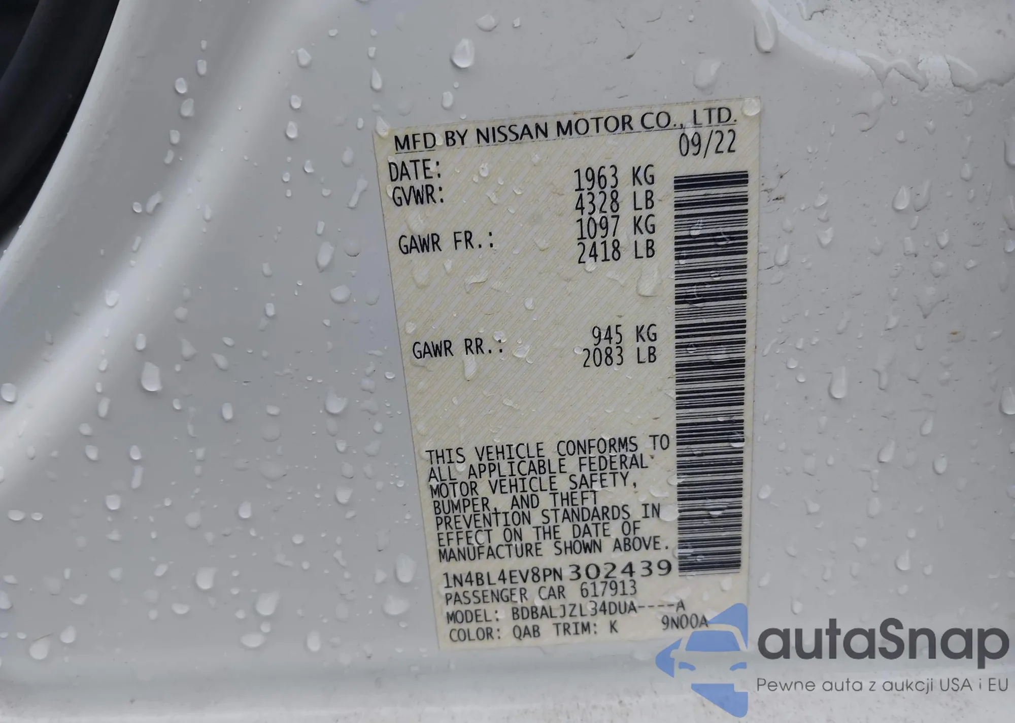 • VIN 1N4BL4EV8PN302439