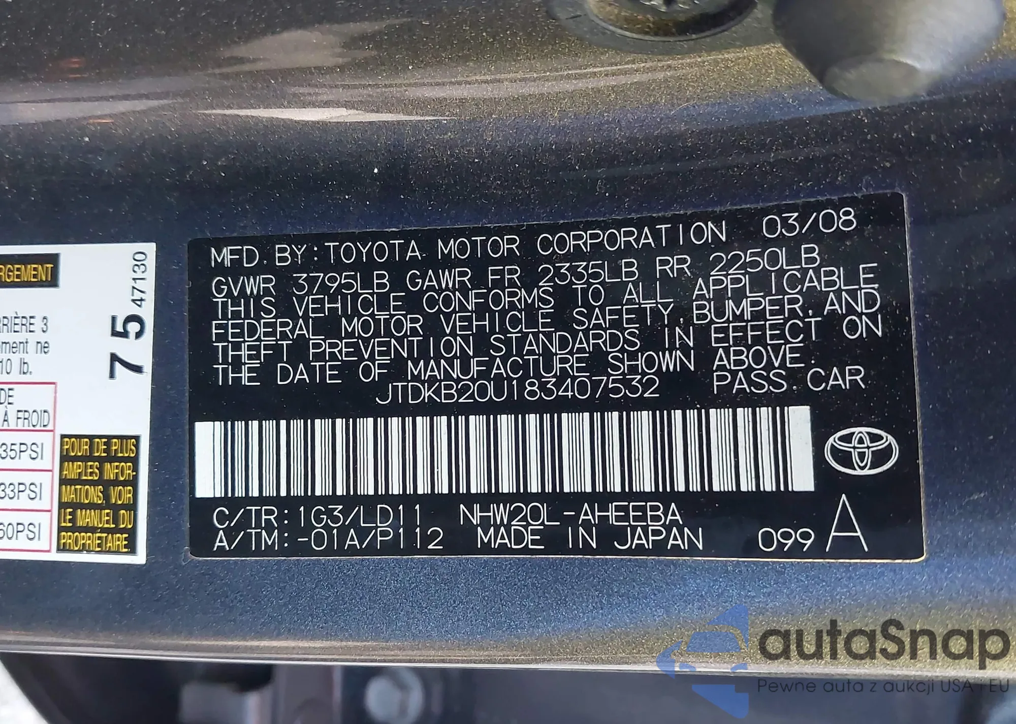 LOT: 43240872 VIN: JTDKB20U183407532