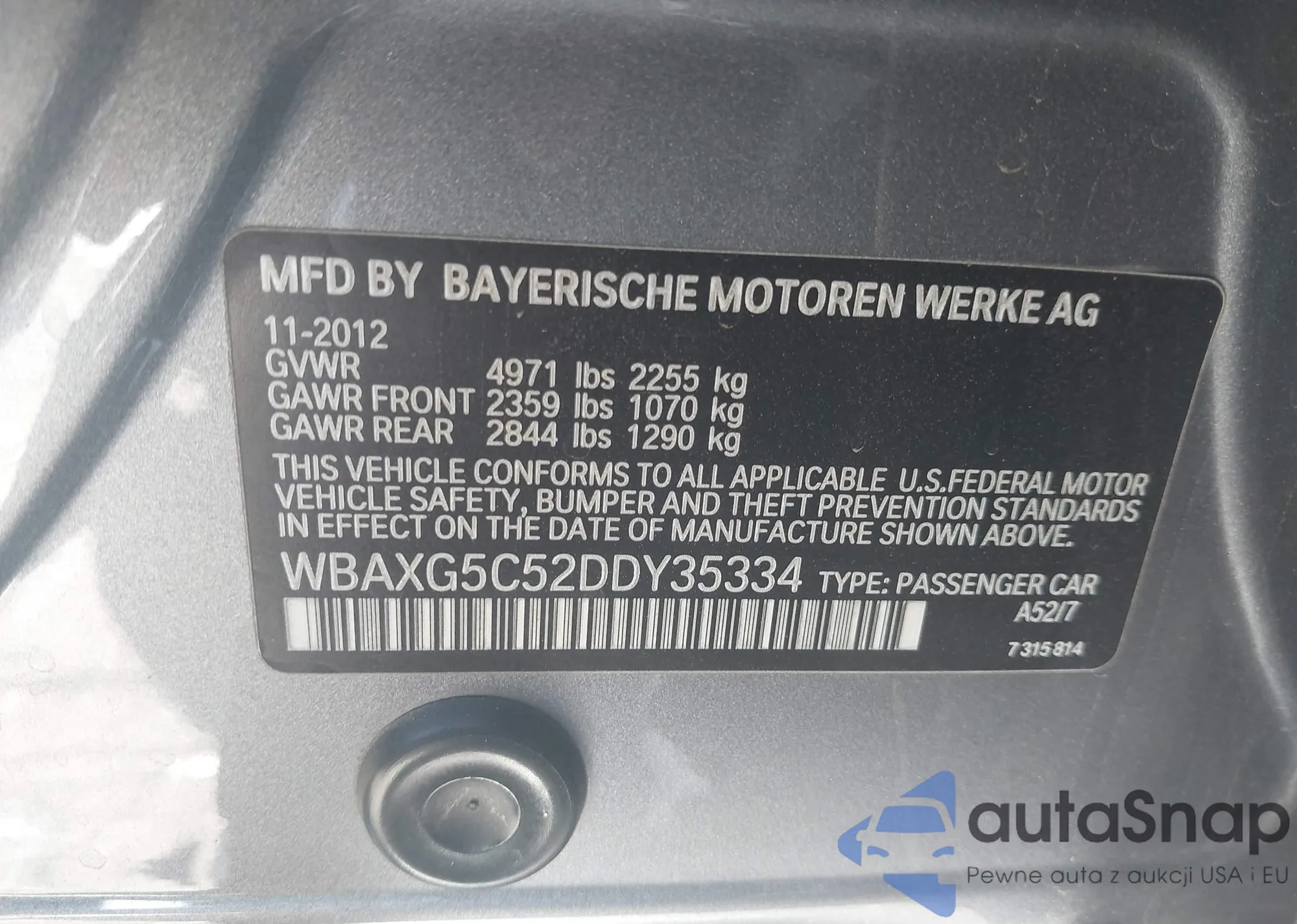 • VIN WBAXG5C52DDY35334