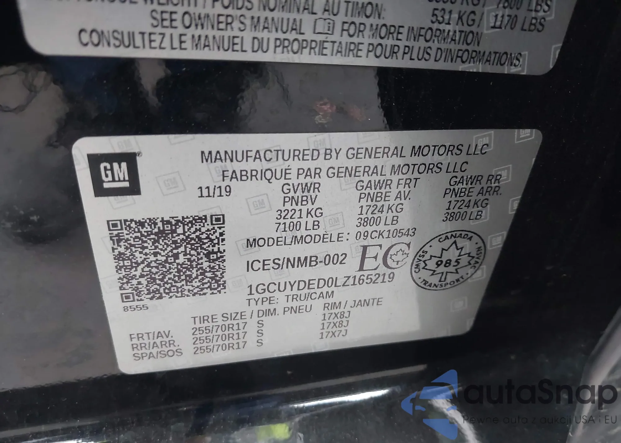 LOT: 43188525 VIN: 1GCUYDED0LZ165219