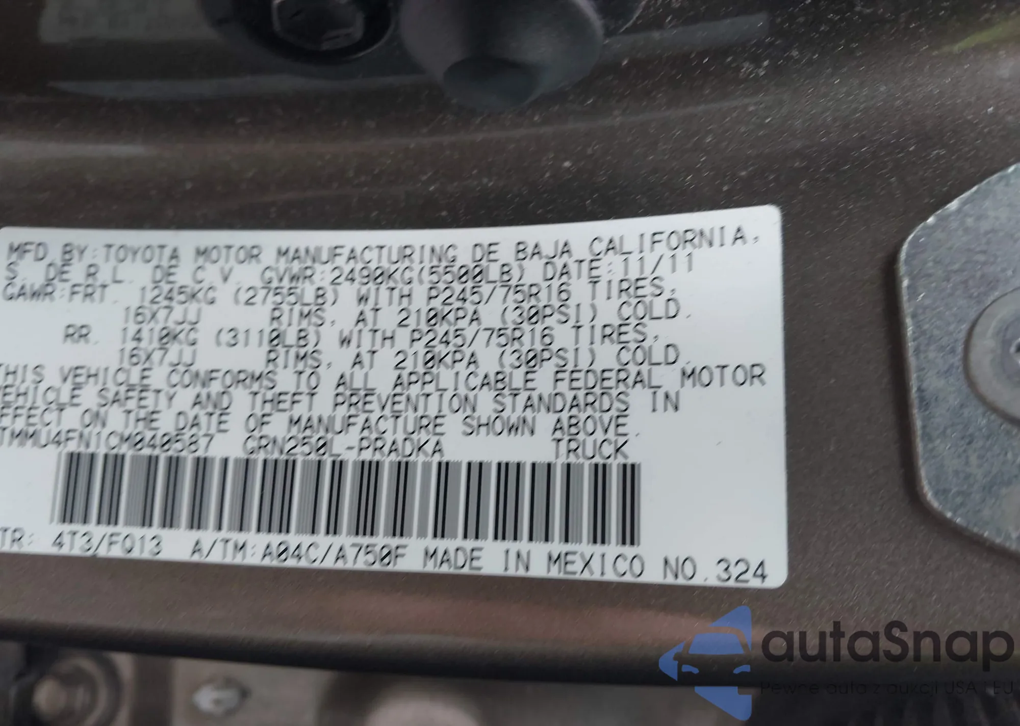 • VIN 3TMMU4FN1CM040587