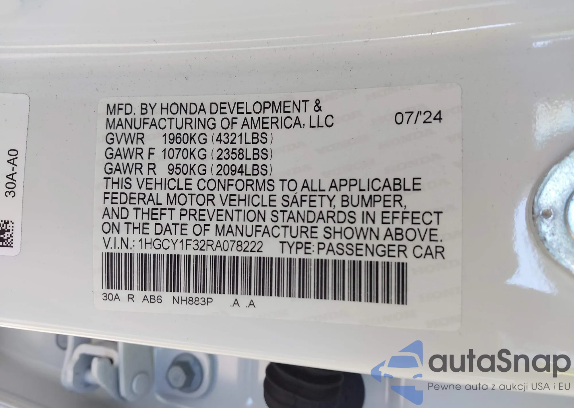 • VIN 1HGCV2F33KA003600