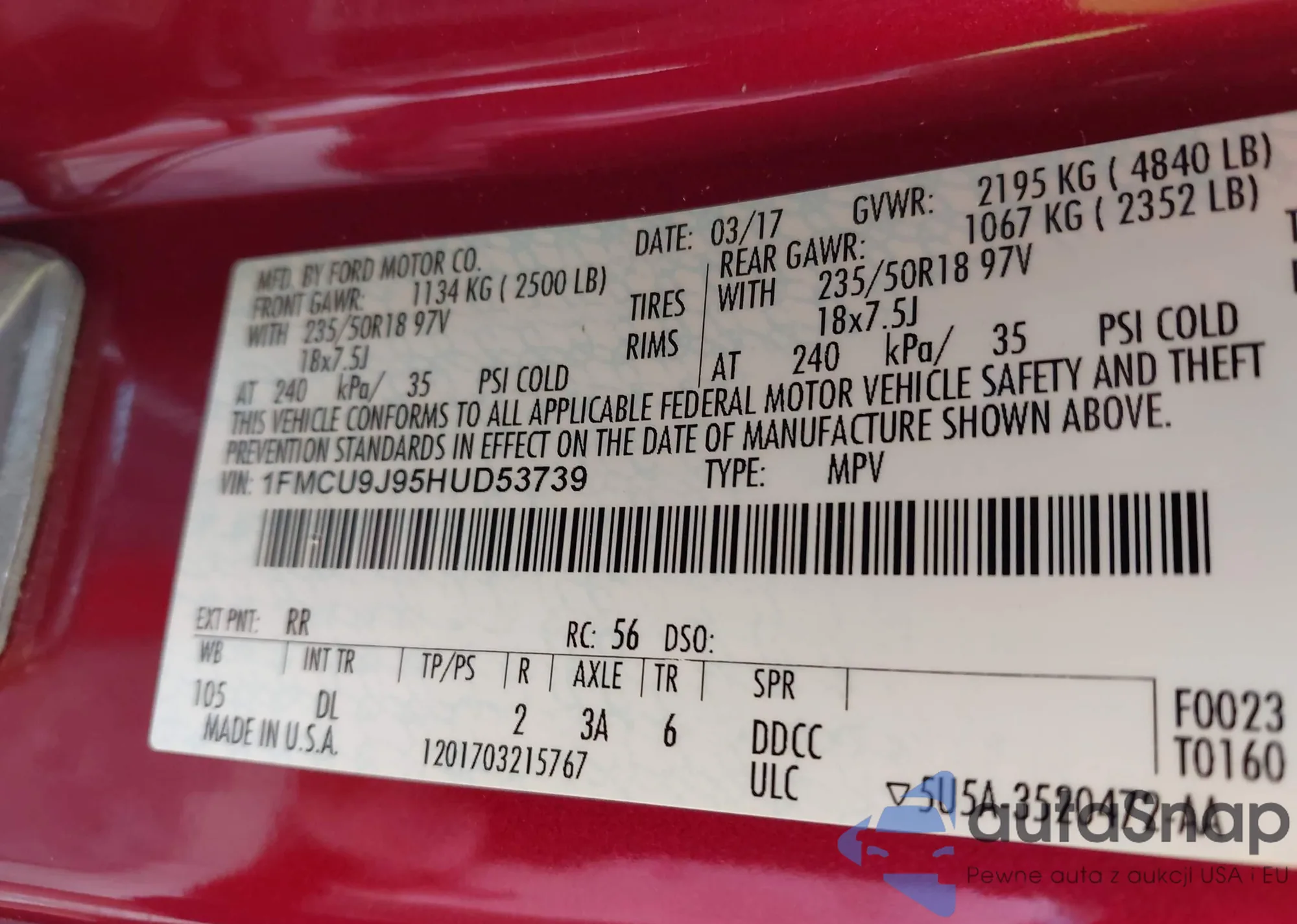 LOT: 42559118 VIN: 1HGCV2F33KA003600