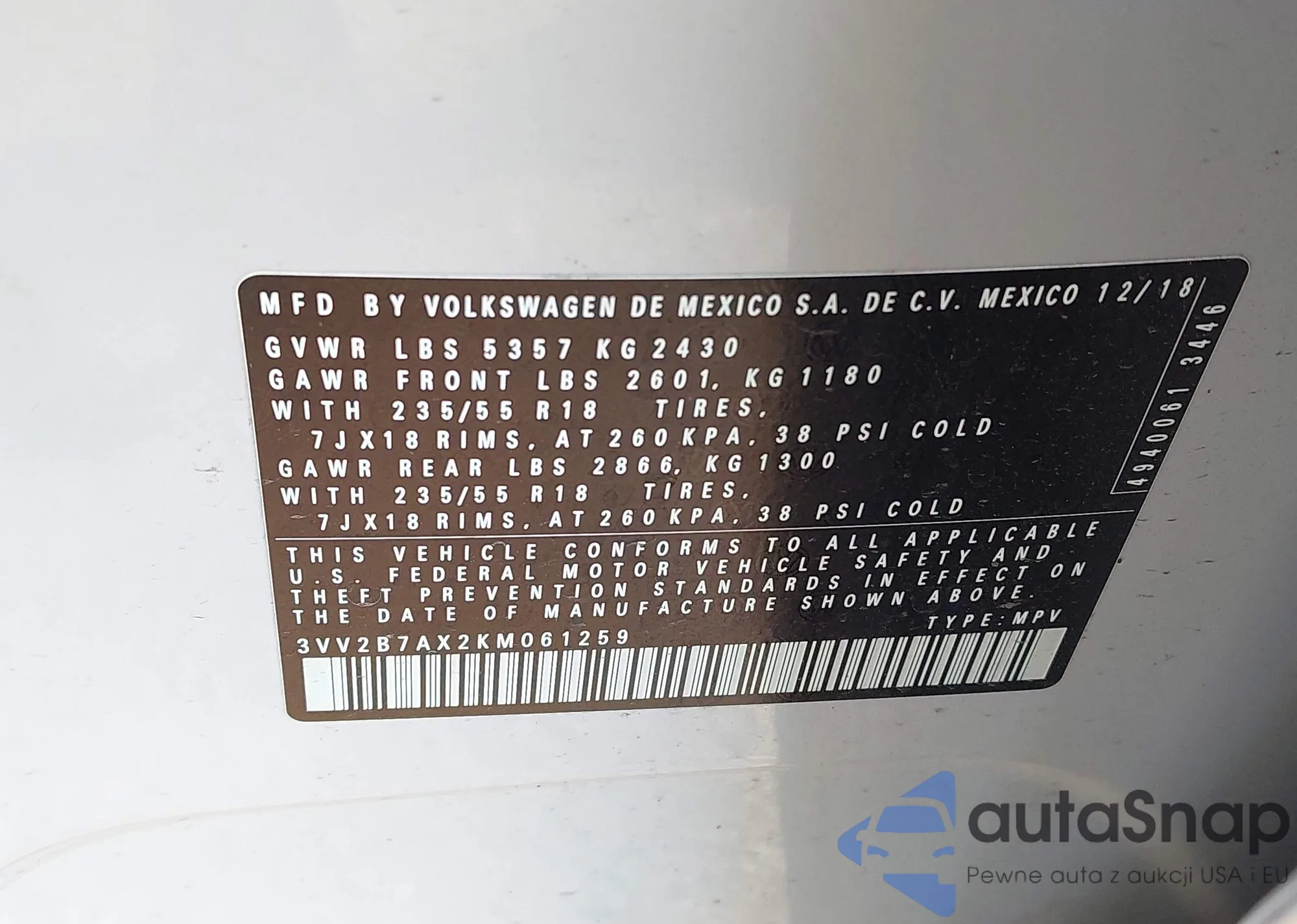 • VIN 3VV2B7AX2KM061259
