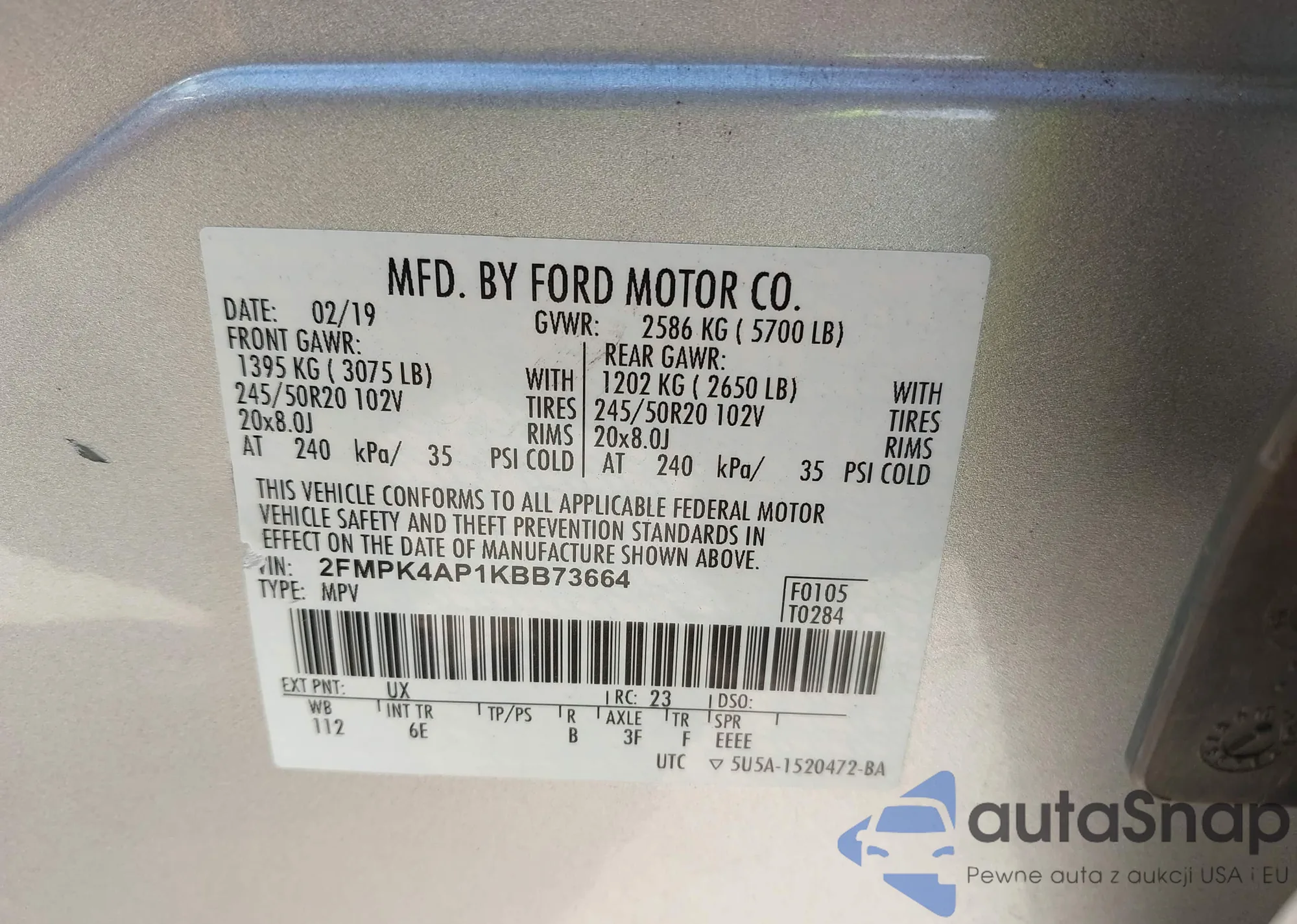 LOT: 43164694 VIN: 3VV2B7AX2KM061259