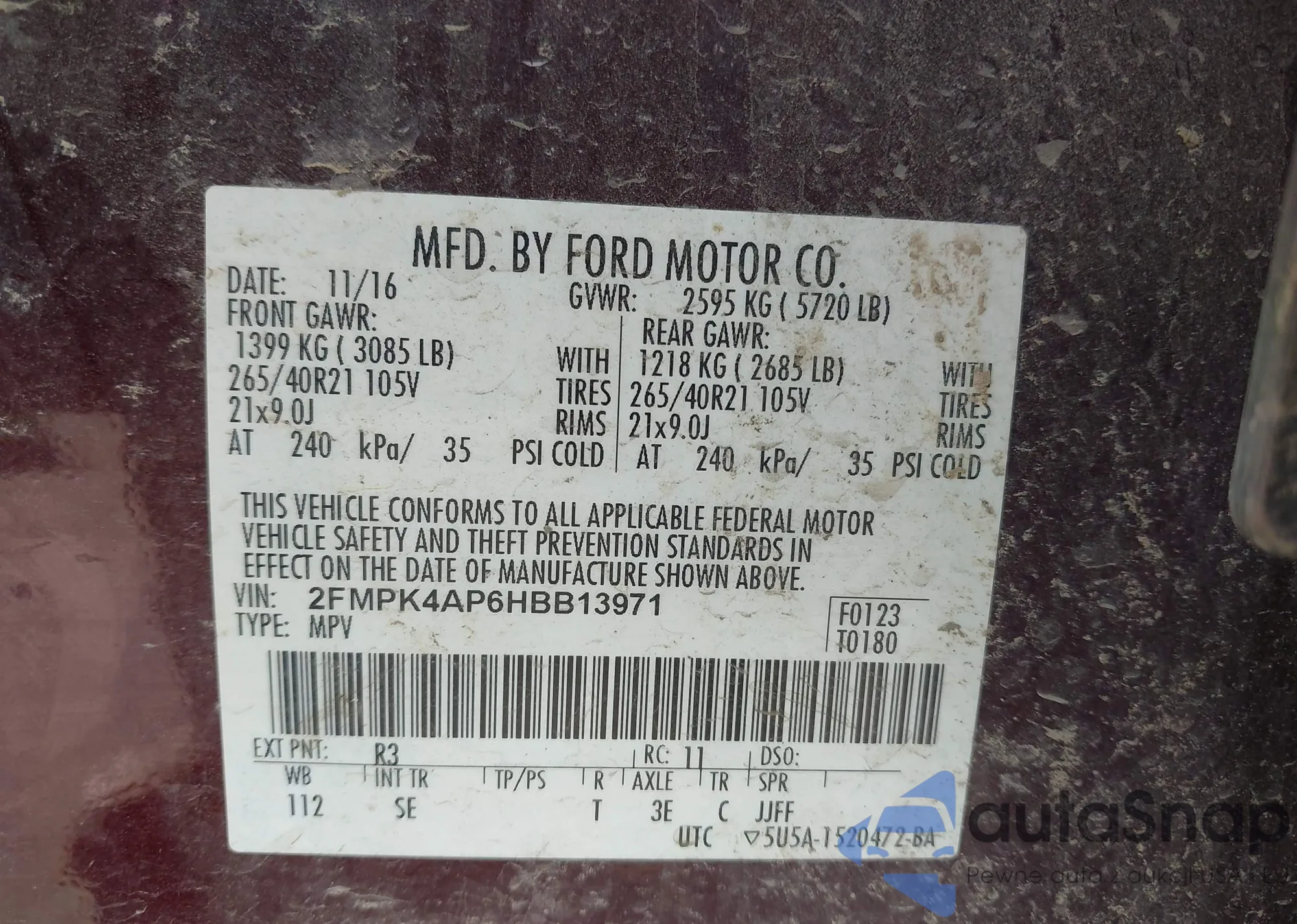 • VIN 2FMPK4AP6HBB13971
