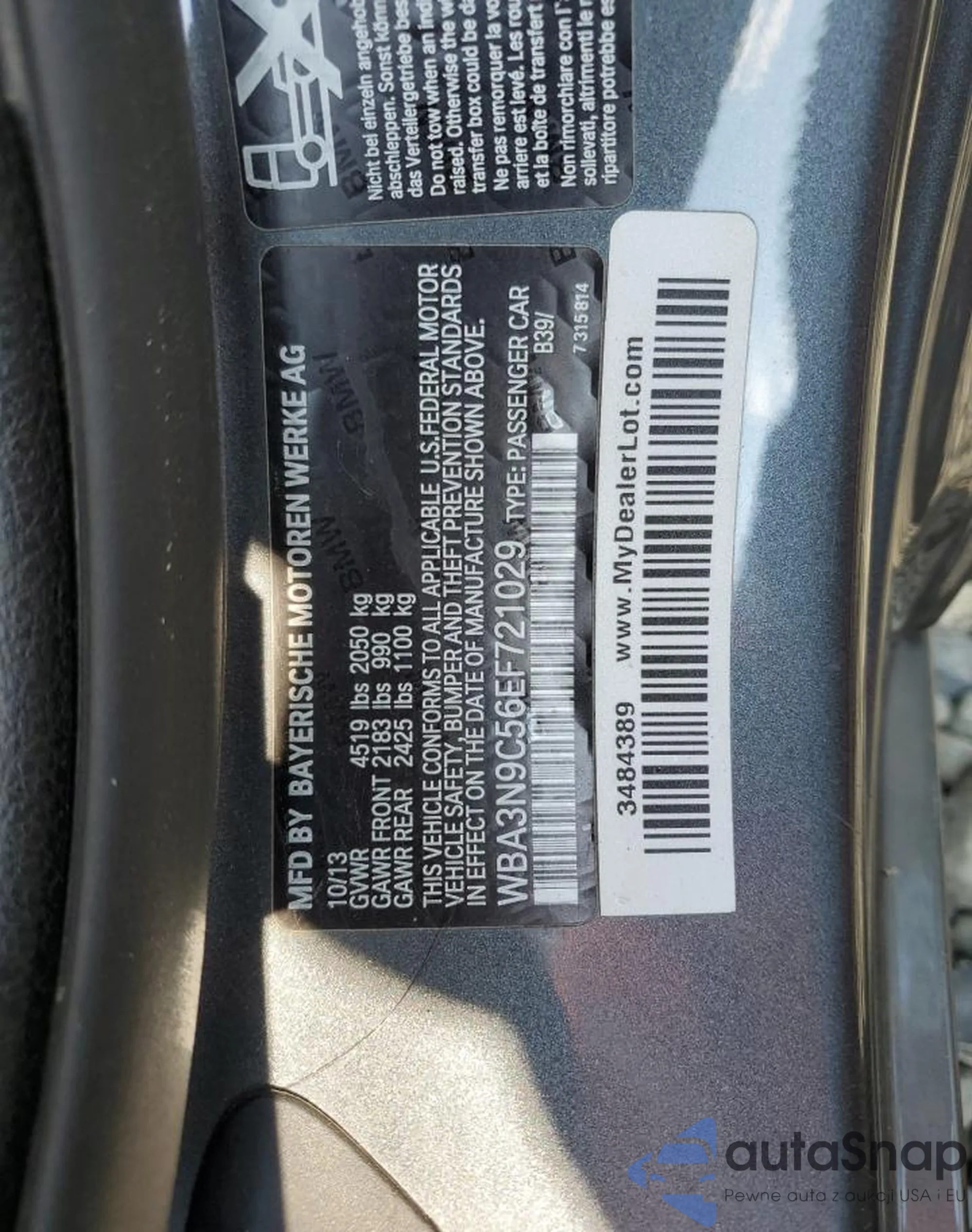 • VIN WBA3N9C56EF721029