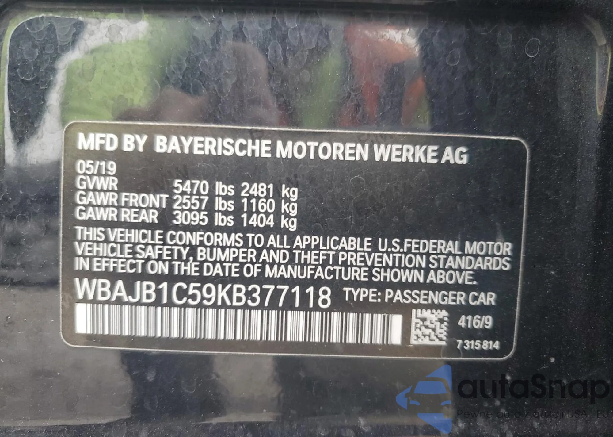 • VIN WBAJB1C59KB377118