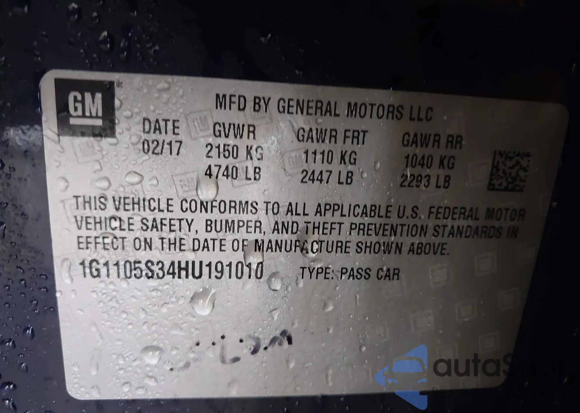 • VIN 1G1105S34HU191010