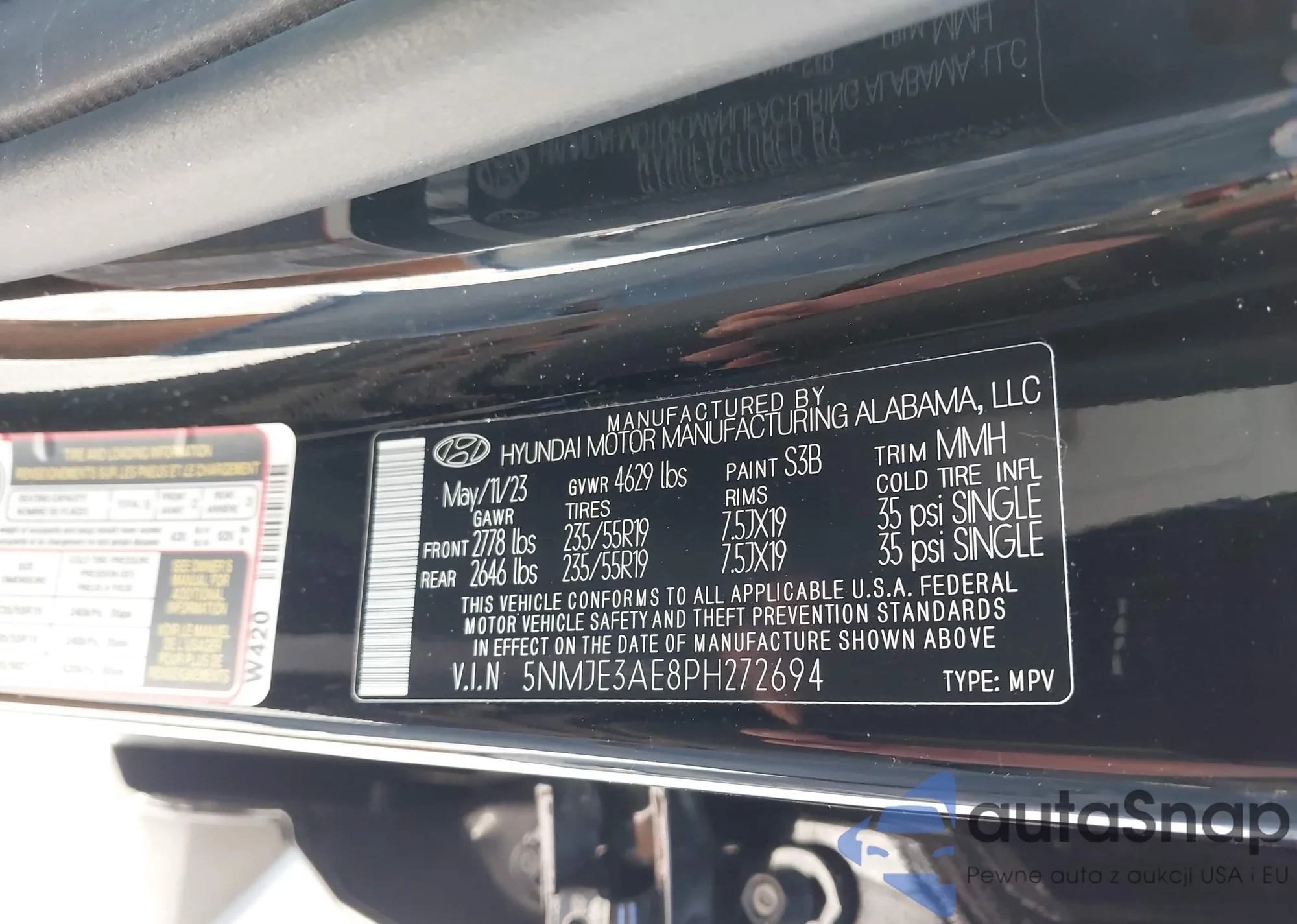 • VIN 5NMJBCDE3SH471214