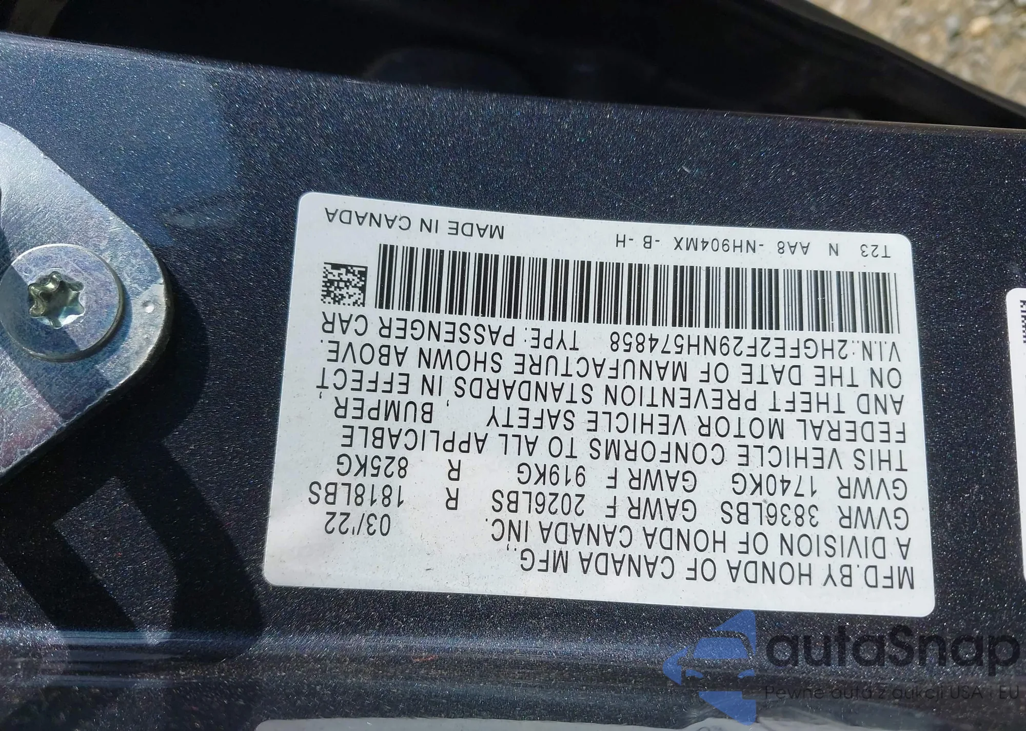 • VIN 2HGFE2F29NH574858