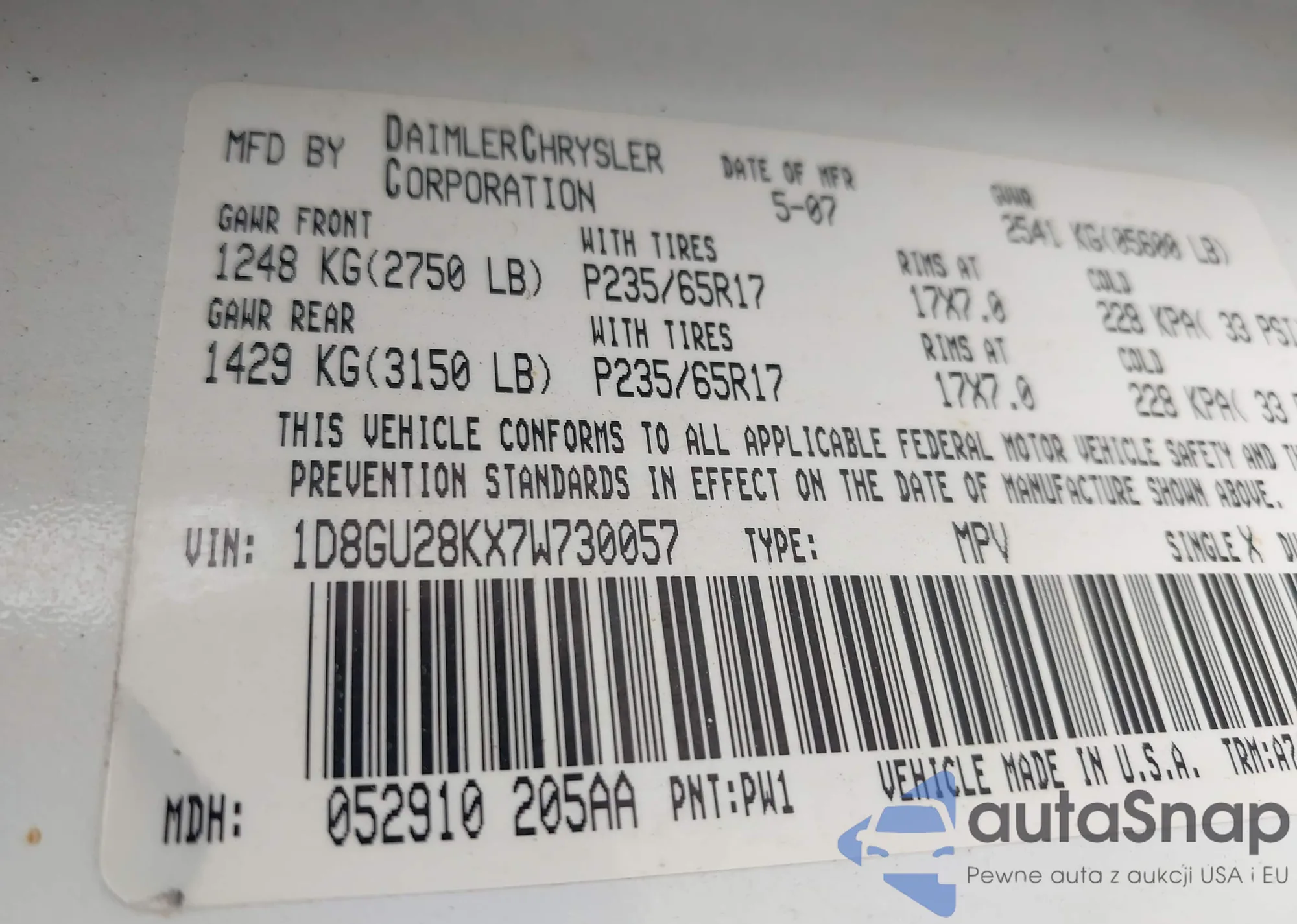 LOT: 43006064 VIN: 2A4GP54L37R182802