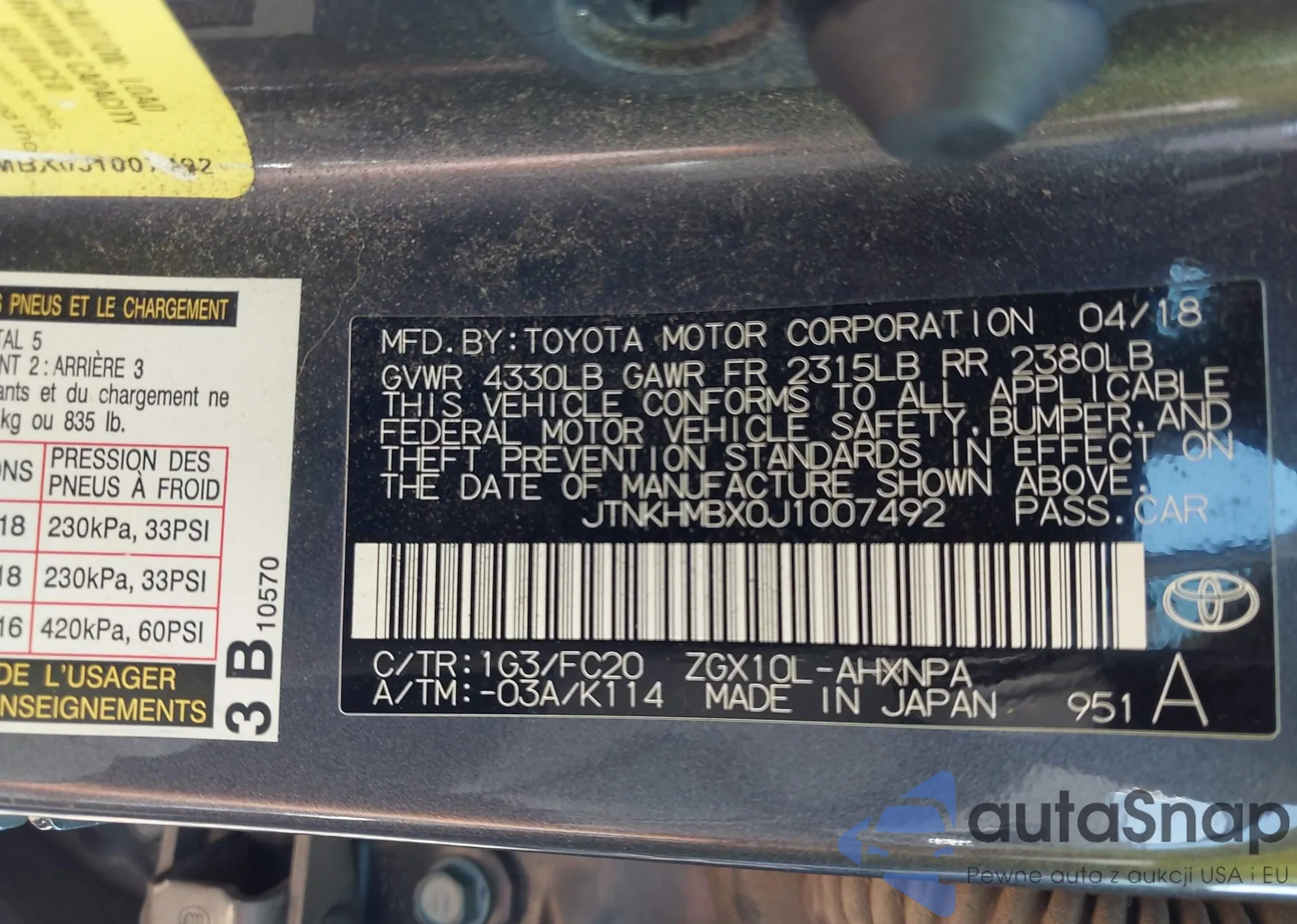 LOT: 43008559 VIN: JTNKHMBX0J1007492