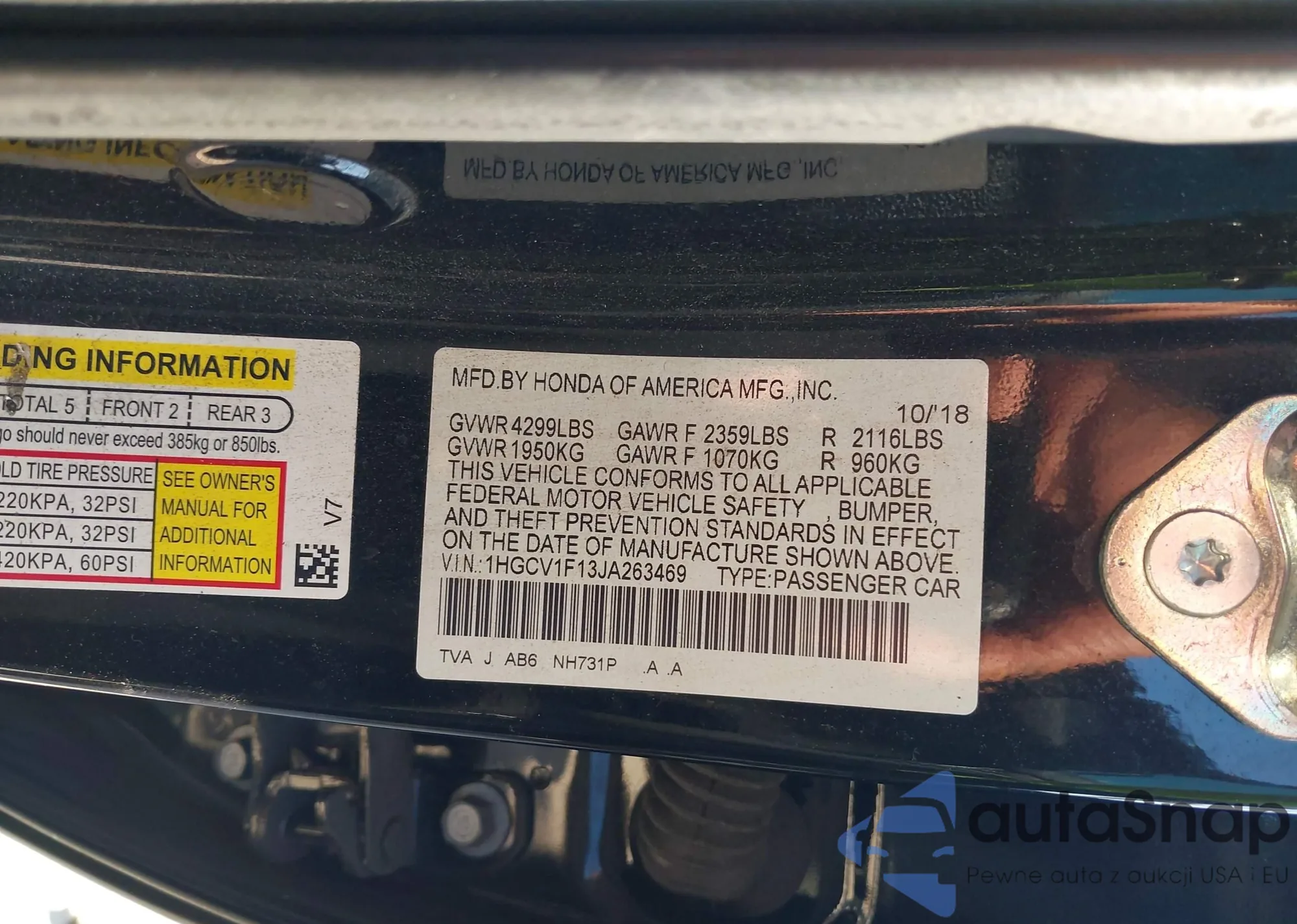 • VIN 1HGCV1F13JA263469