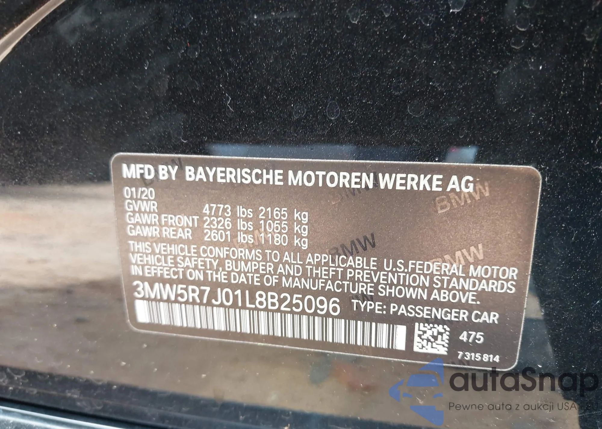 LOT: 43032973 VIN: 3MW5R7J01L8B25096