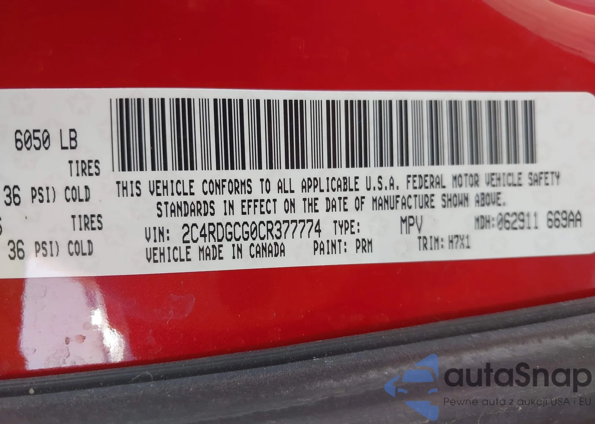 • VIN 2C4RDGCG0CR377774
