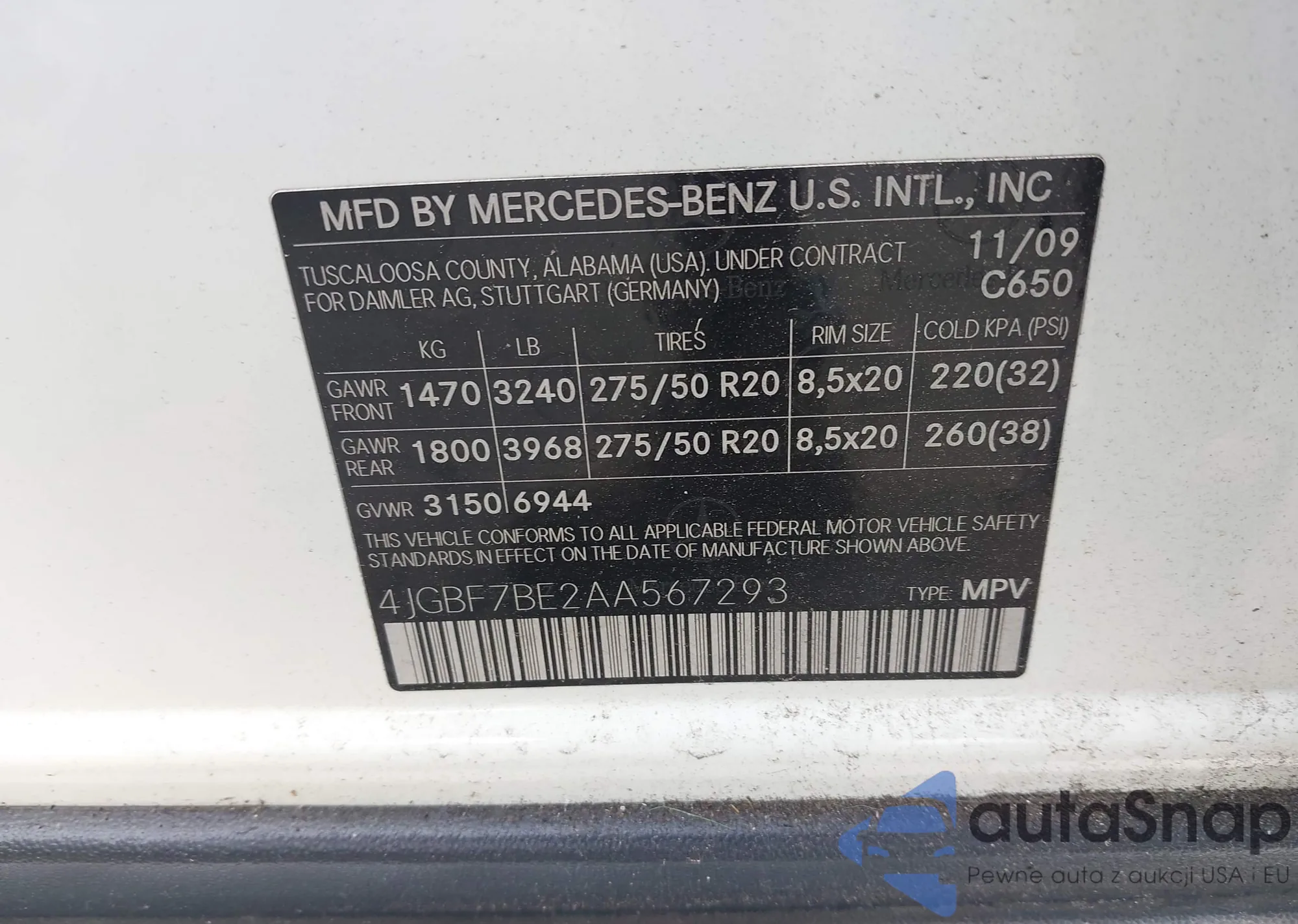 LOT: 43209812 VIN: 4JGBF7BE2AA567293