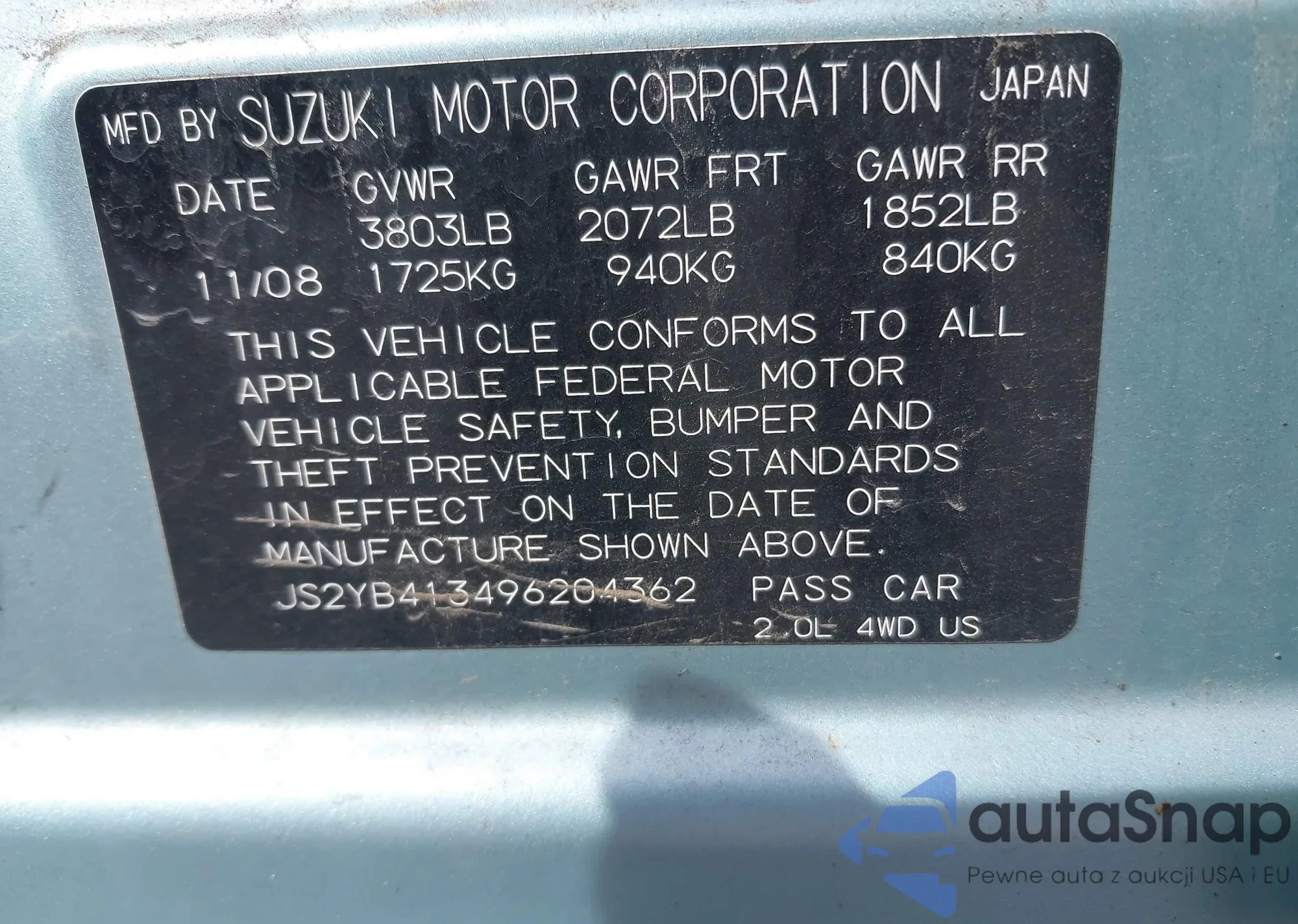 LOT: 43271561 VIN: JS2YB413496204362