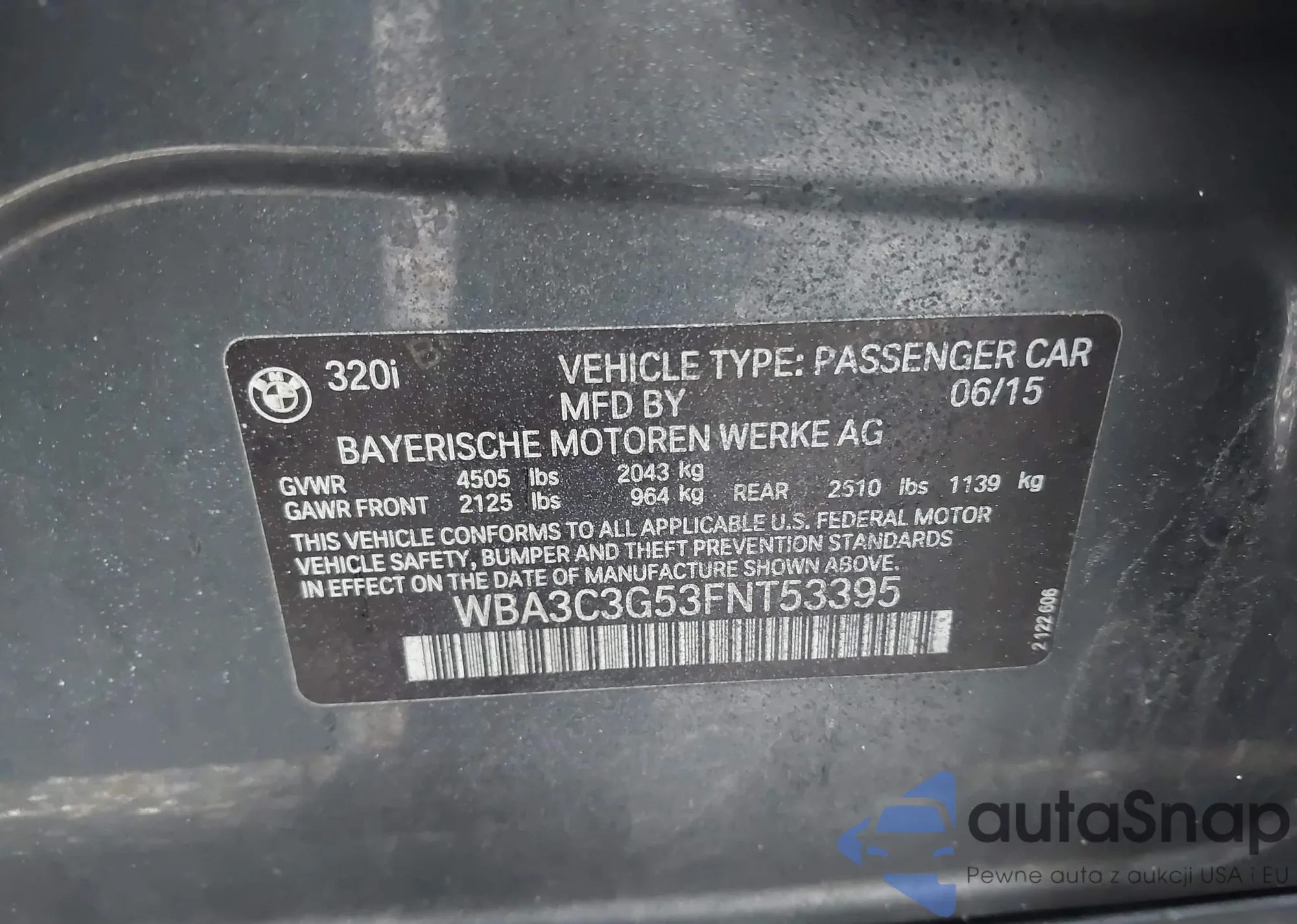 2015 BMW 320I xDrive from USA, damaged, VIN WBA3C3G53FNT53395