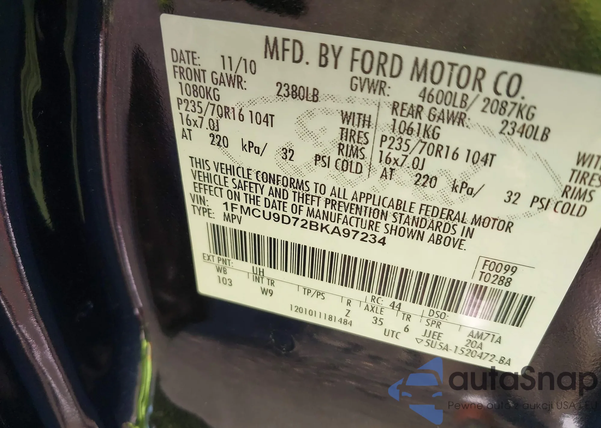 • VIN 1FMCU9D72BKA97234