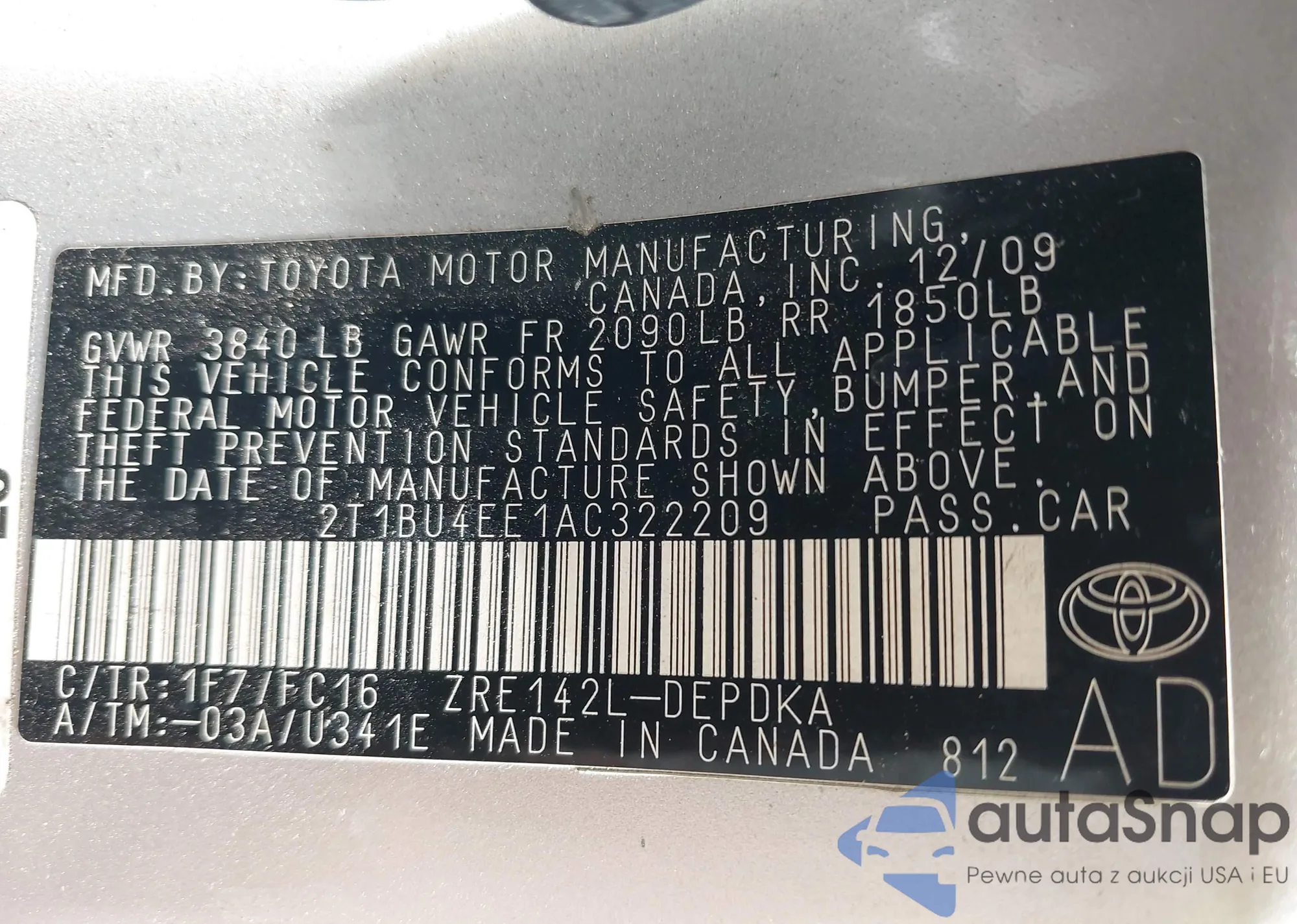 • VIN 2T1BU4EE1AC322209