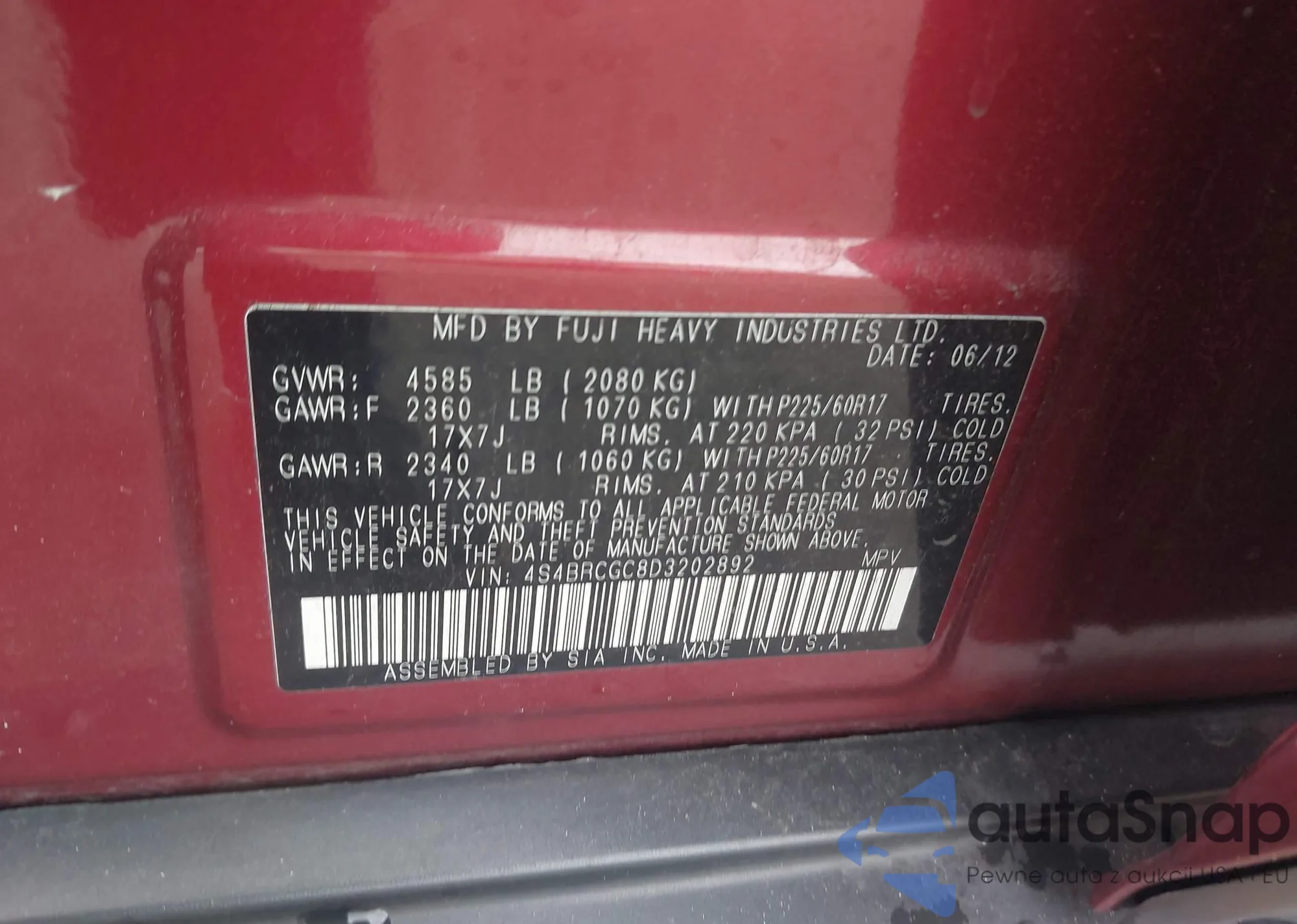 • VIN 4S4BRCGC8D3202892