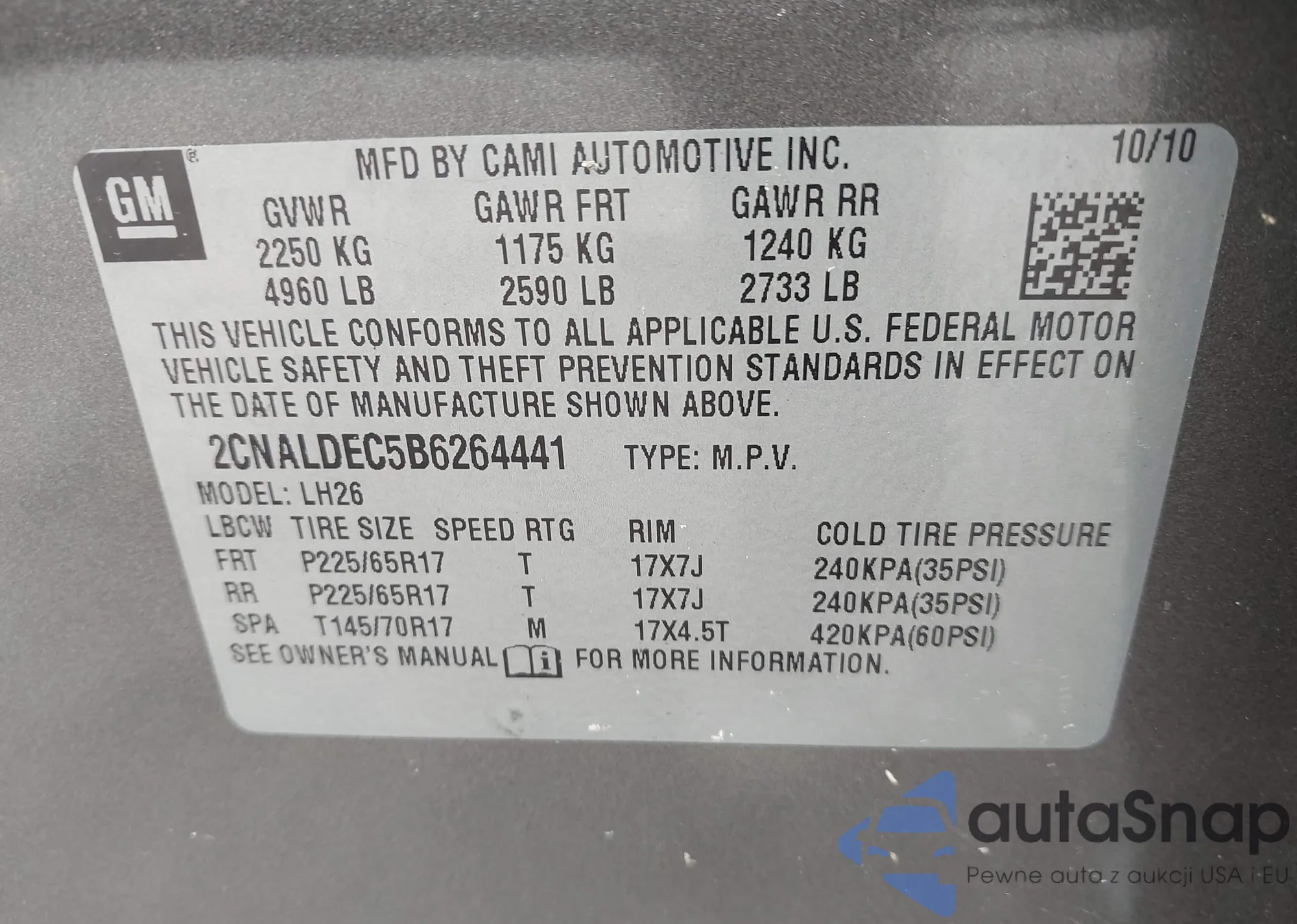 • VIN 2CNALDEC5B6264441