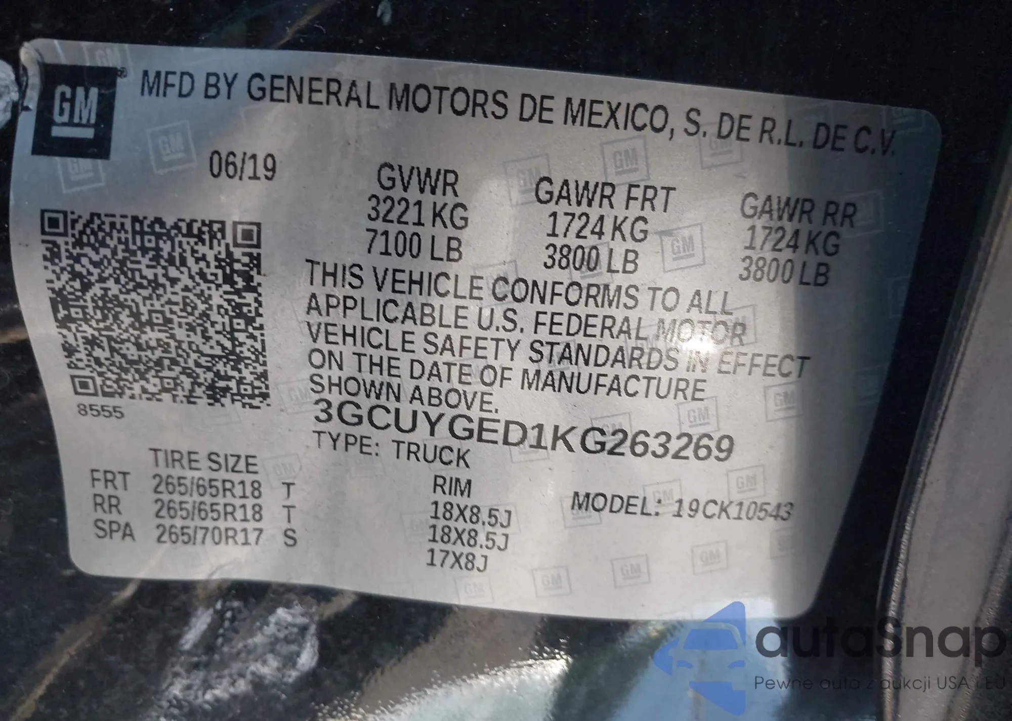 LOT: 43161983 VIN: 3GCUYGED1KG263269