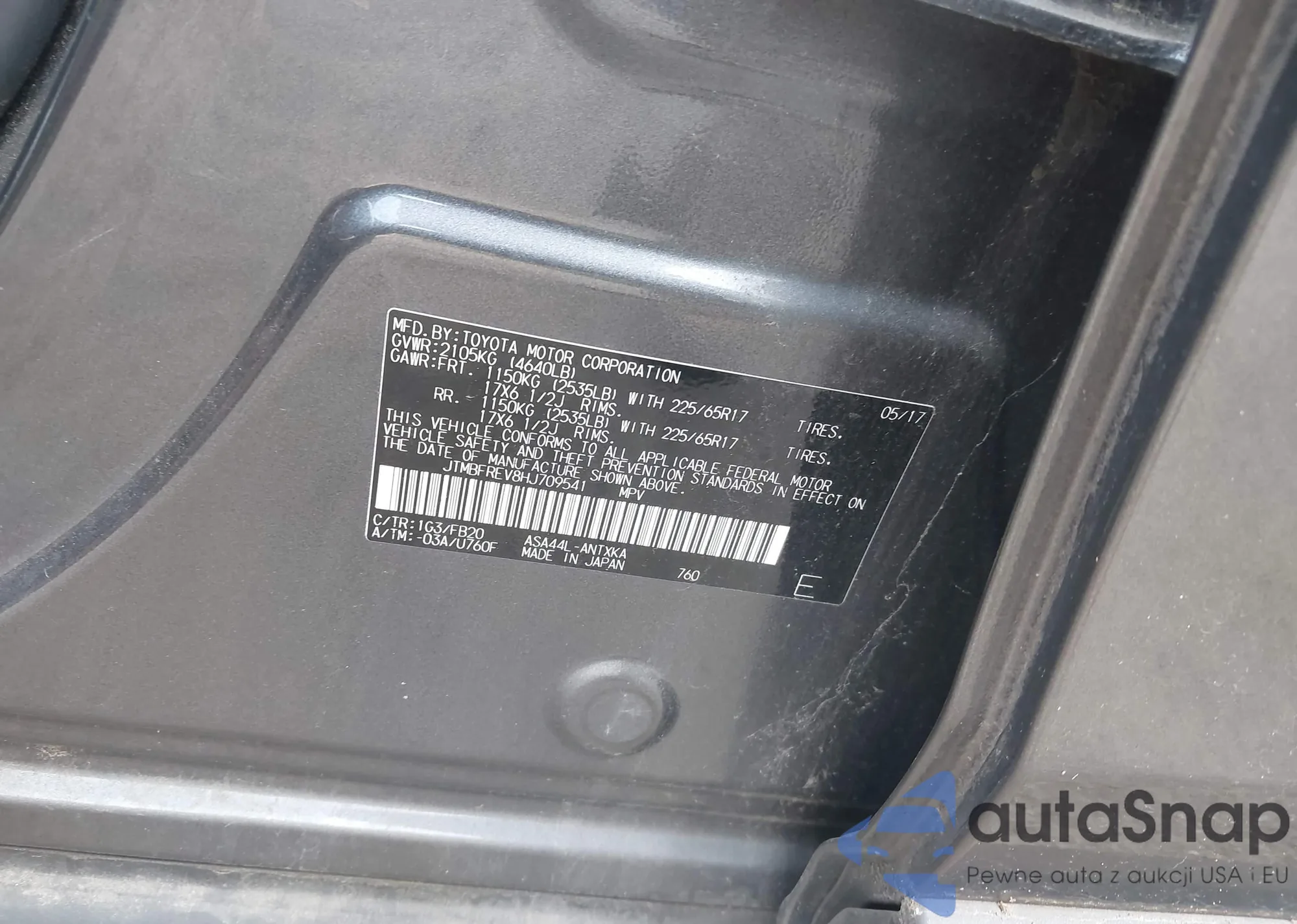 LOT: 43166981 VIN: JTMBFREV8HJ709541