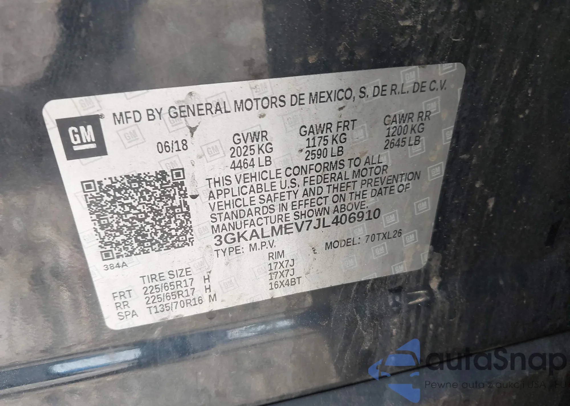 LOT: 43177369 VIN: 5NPEU4AF1AH603614