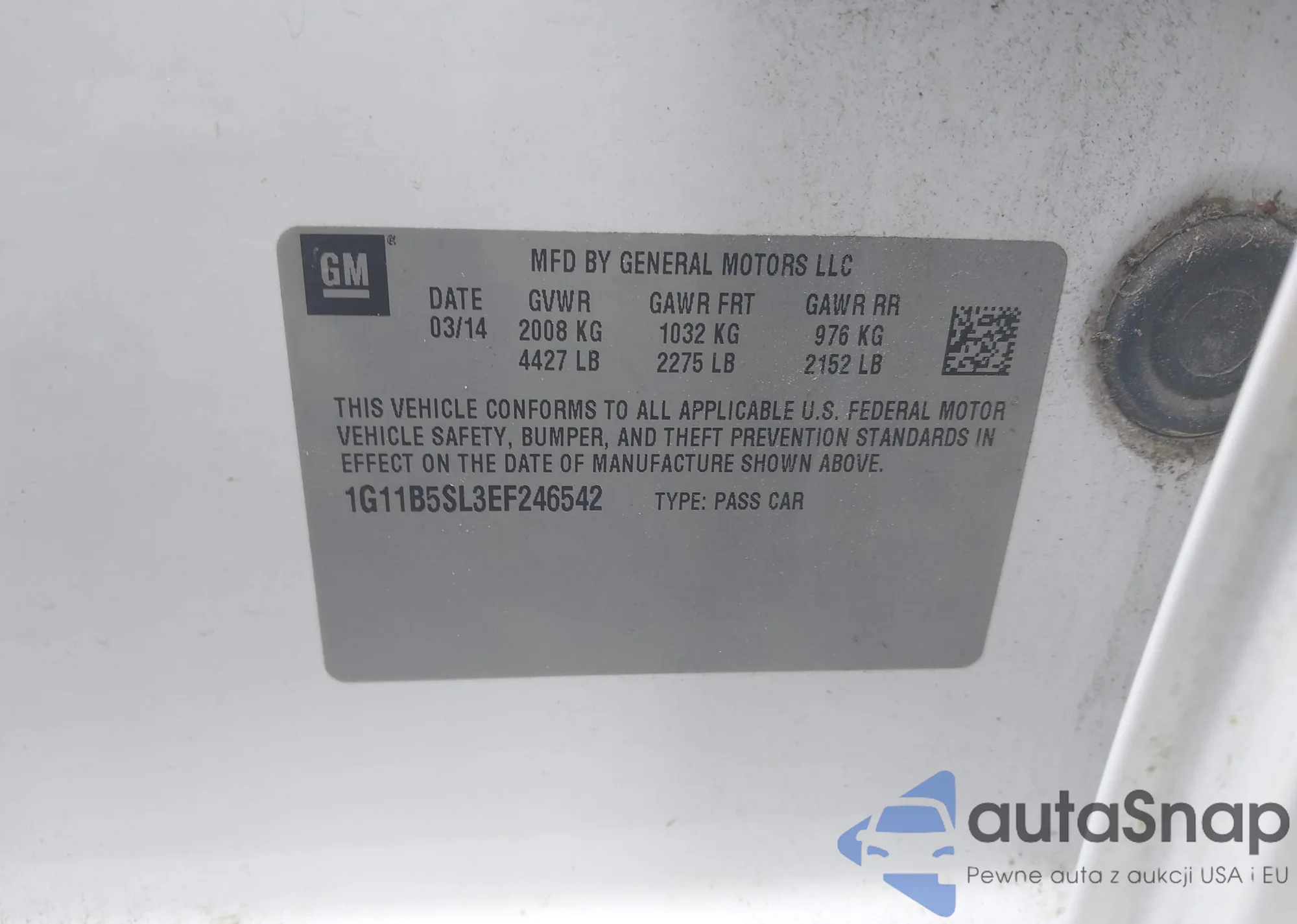LOT: 42895834 VIN: 1G11B5SL3EF246542