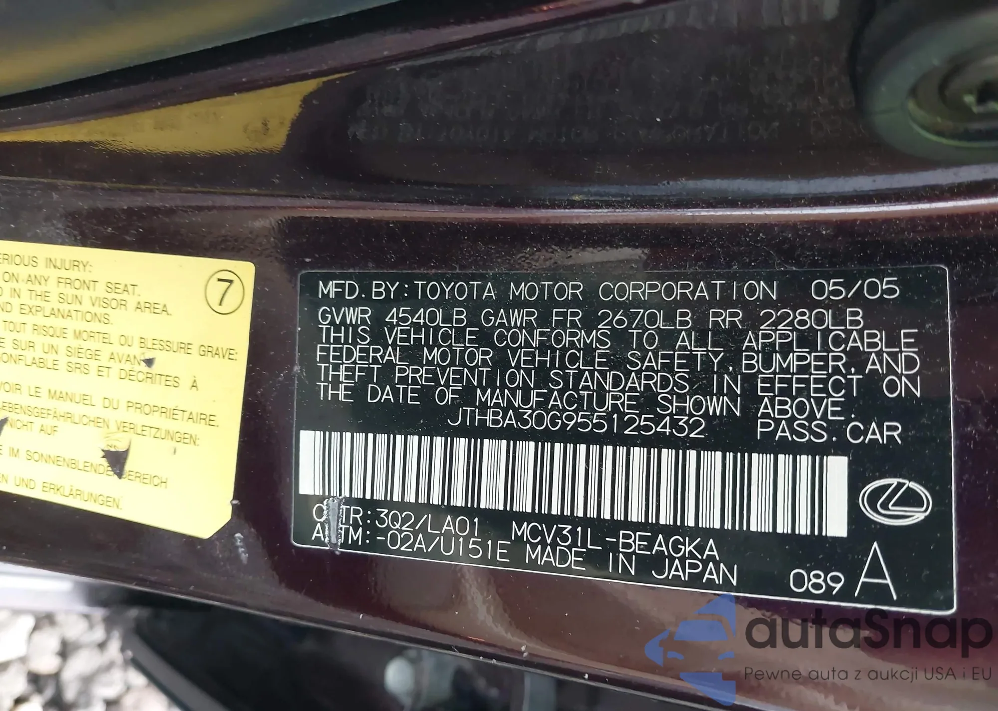 • VIN 1HGCG1656WA074223