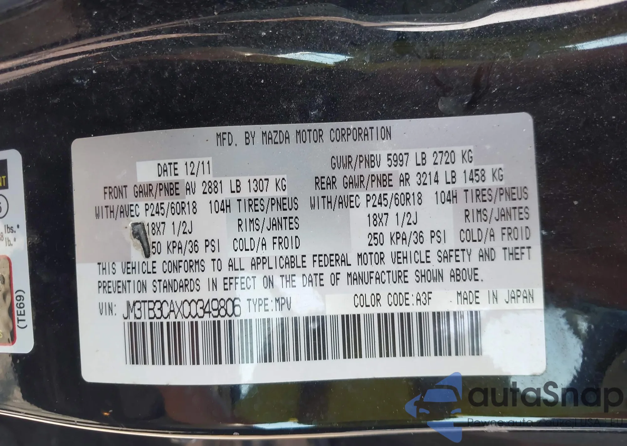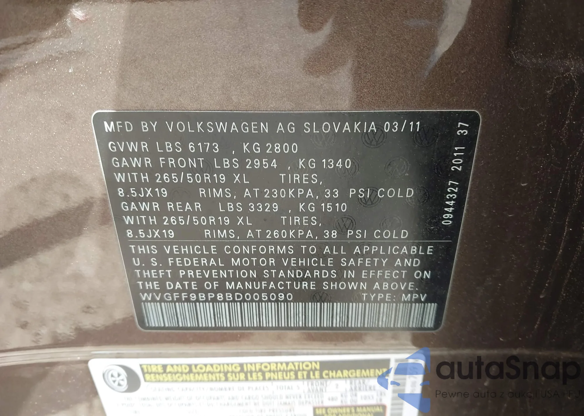 • VIN WVGFF9BP8BD005090