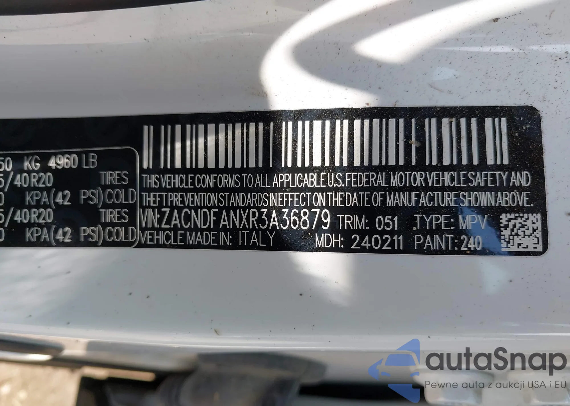 LOT: 42390944 VIN: ZACNDFANXR3A36879