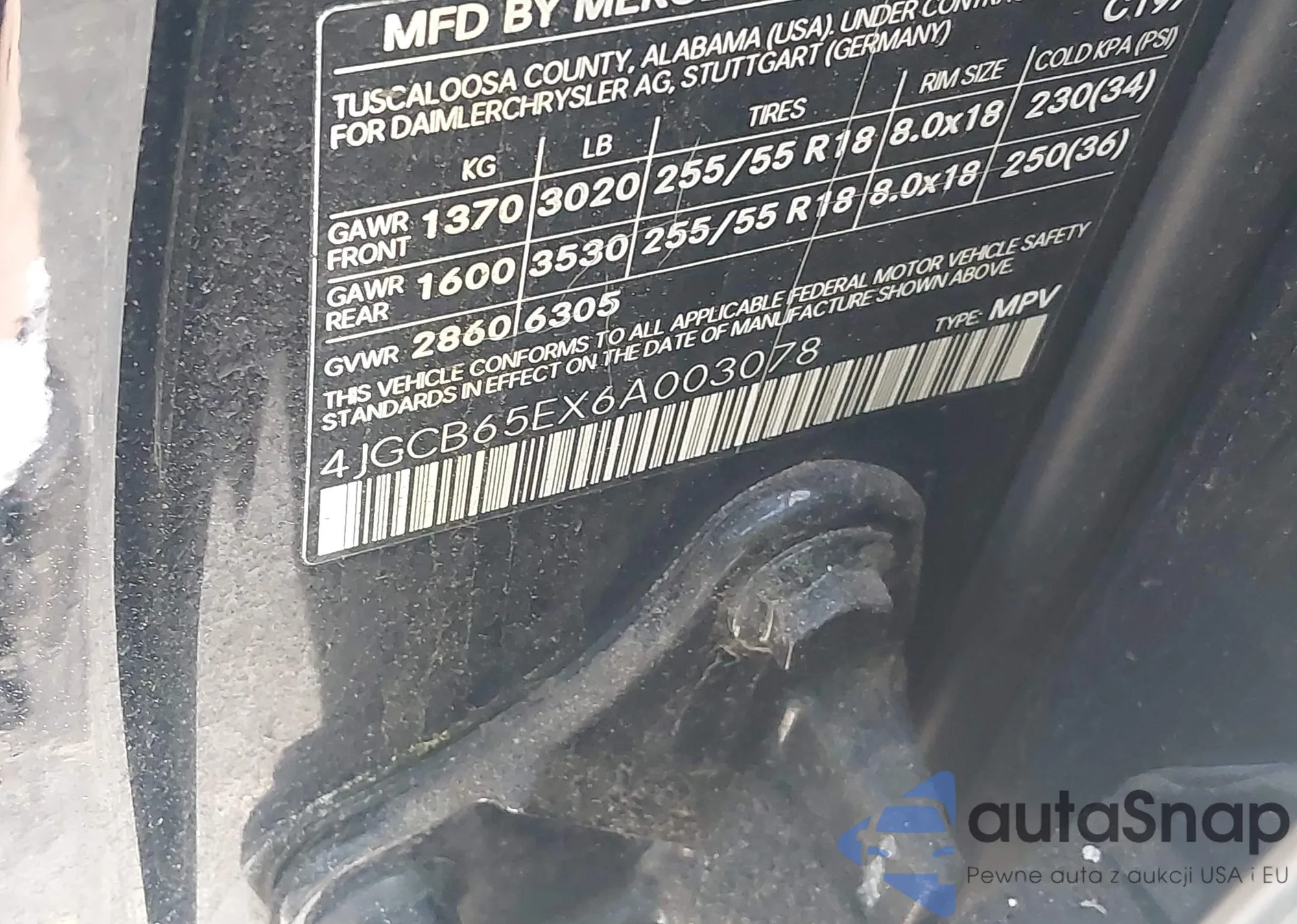• VIN 4JGCB65EX6A003078