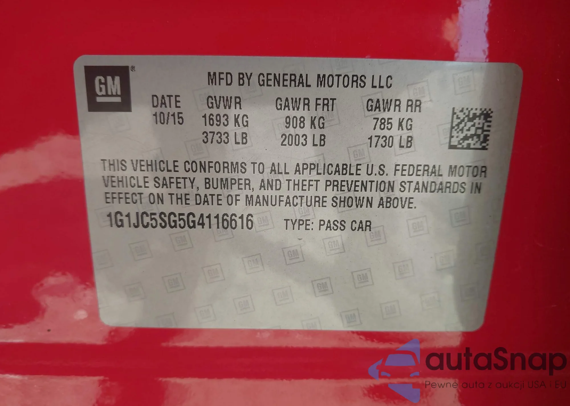 LOT: 43015679 VIN: 1G1JC5SG5G4116616
