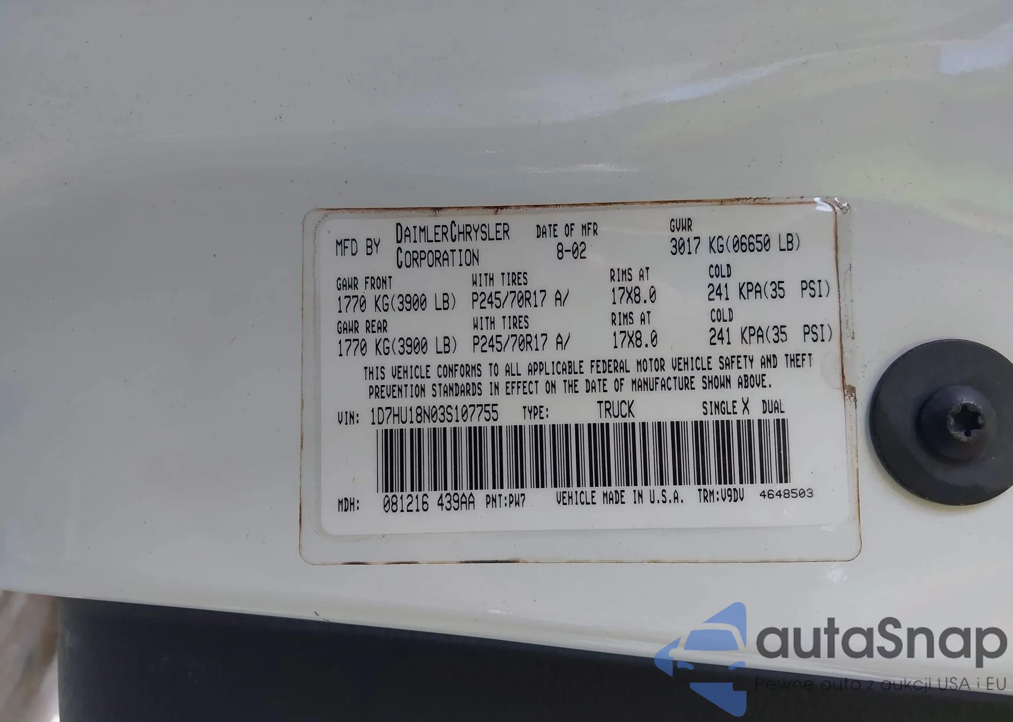 • VIN 1D7HU18N03S107755