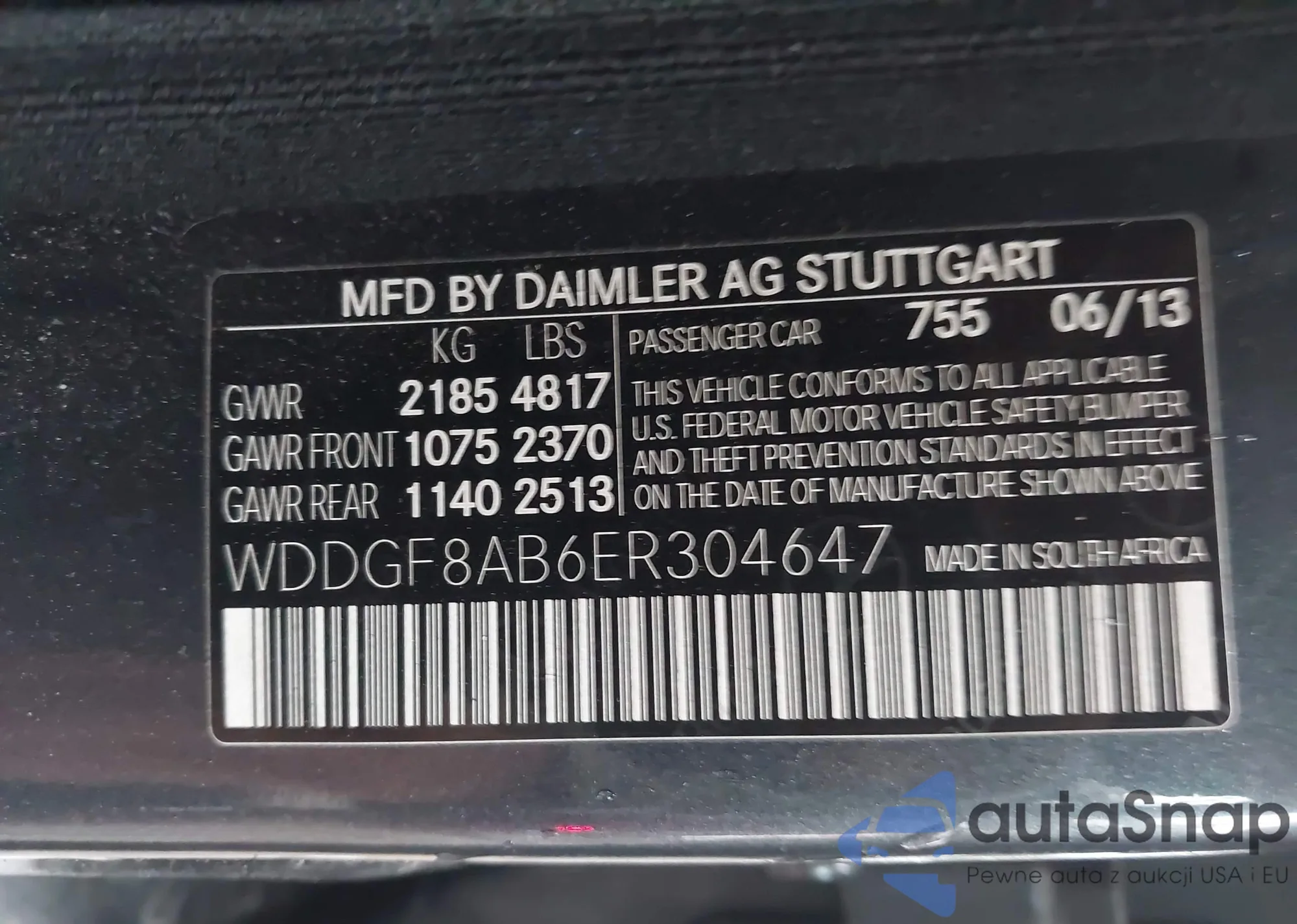 • VIN WDDGF8AB6ER304647