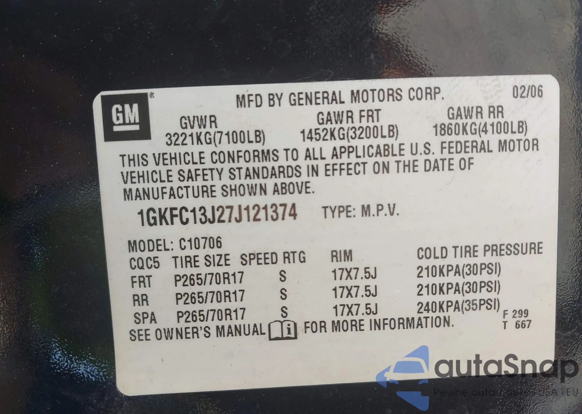 LOT: 42394975 VIN: 1GKFC13J27J121374