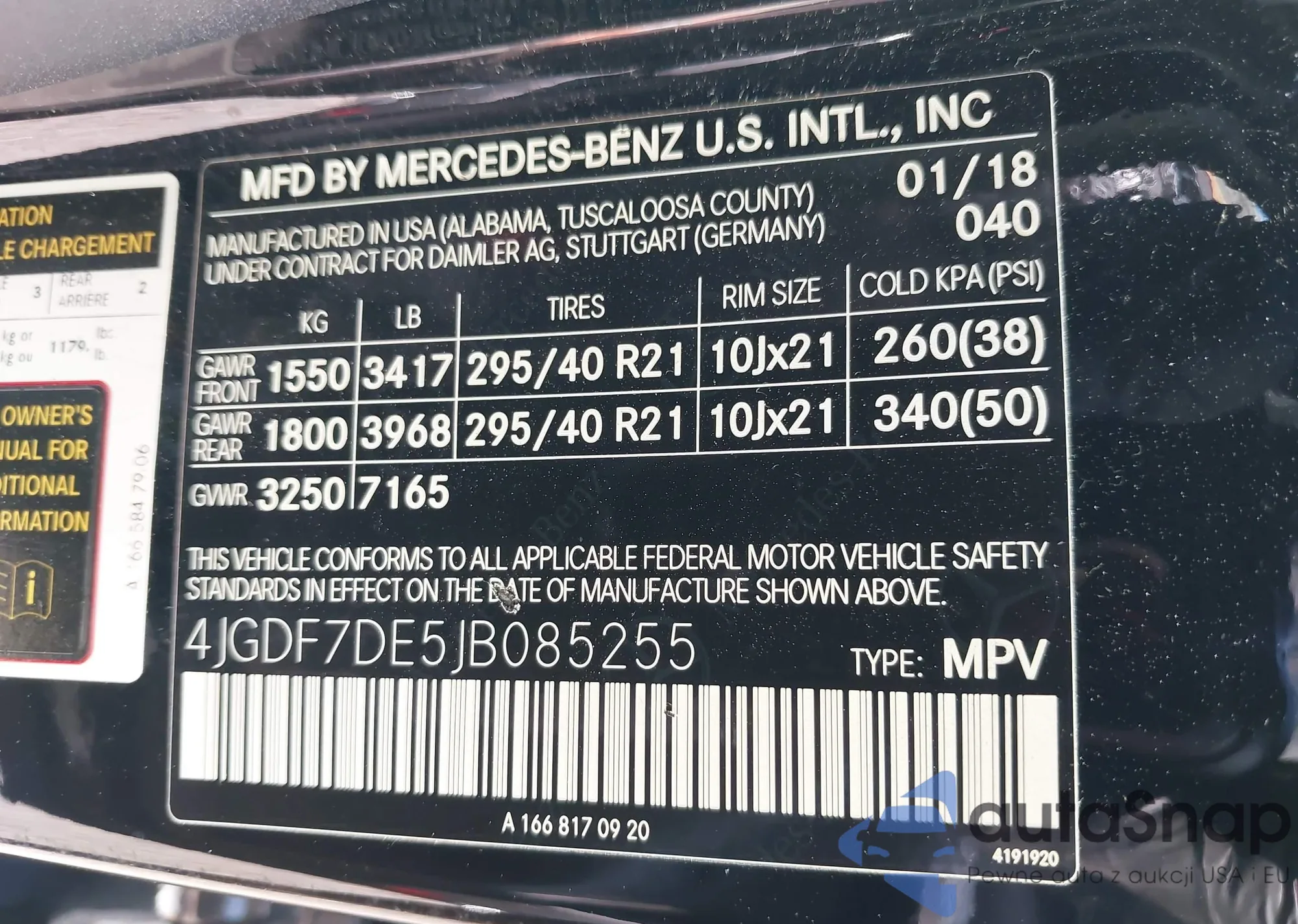 • VIN 4JGDF7DE5JB085255