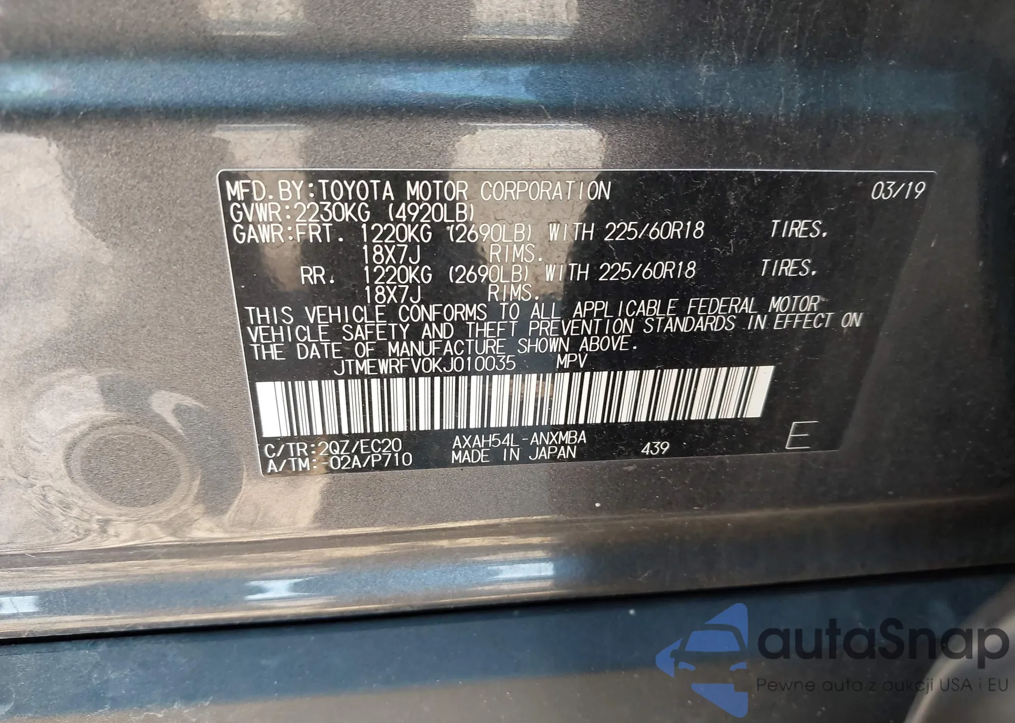 LOT: 42959874 VIN: 4S4BSETC4K3296417