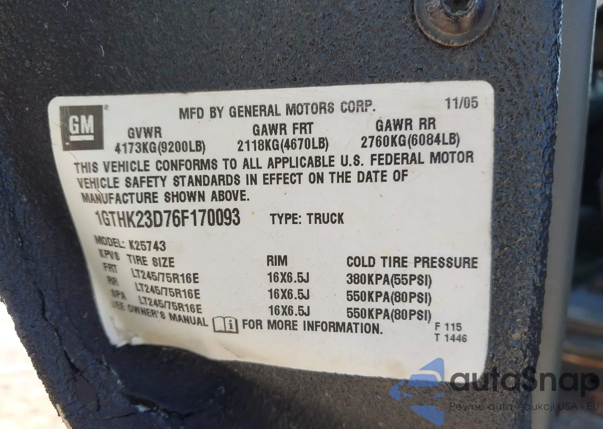 • VIN 1GTHK23D76F170093