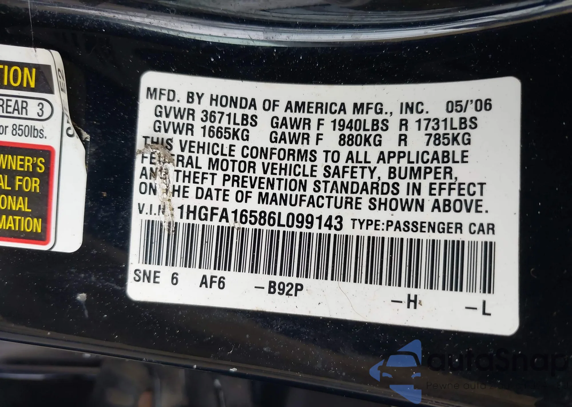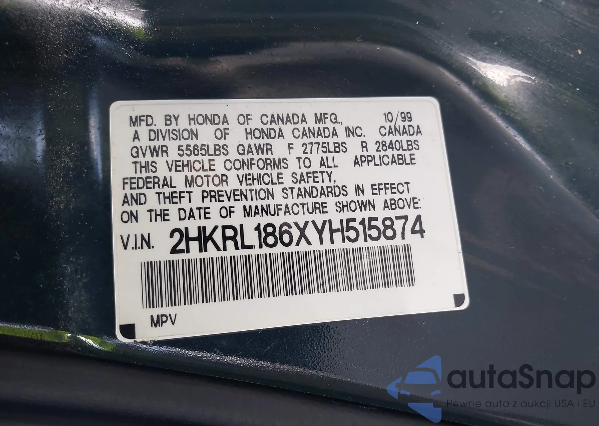 • VIN 2HKRL186XYH515874