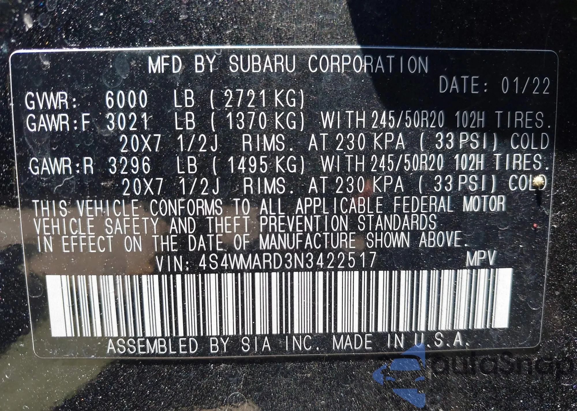 • VIN 4S4WMARD3N3422517