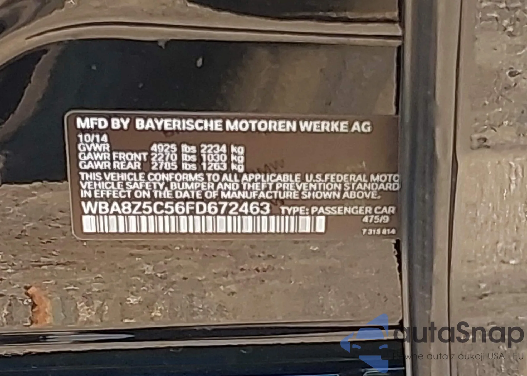 • VIN WBA8Z5C56FD672463