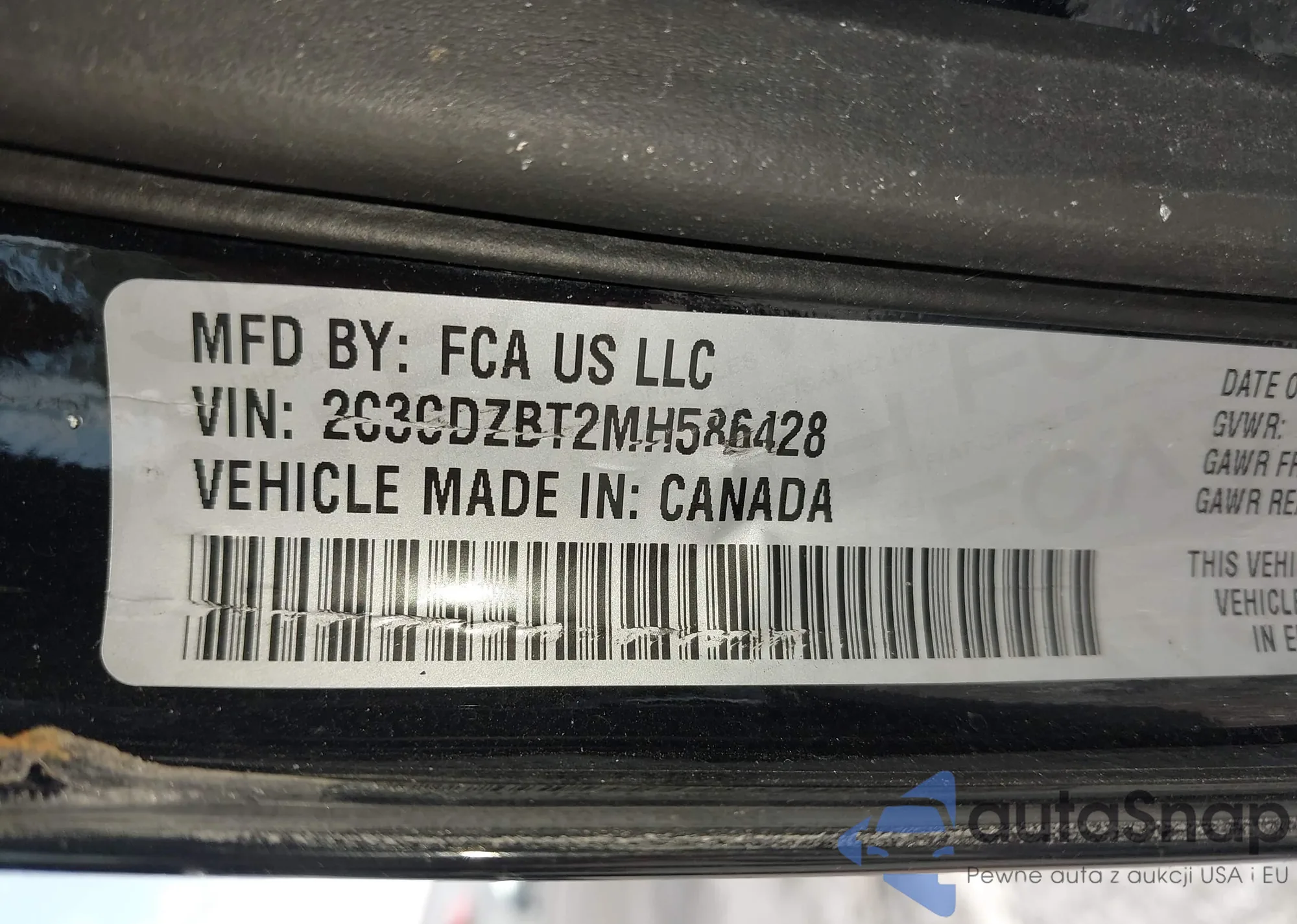 • VIN 2C3CDZBT2MH586428