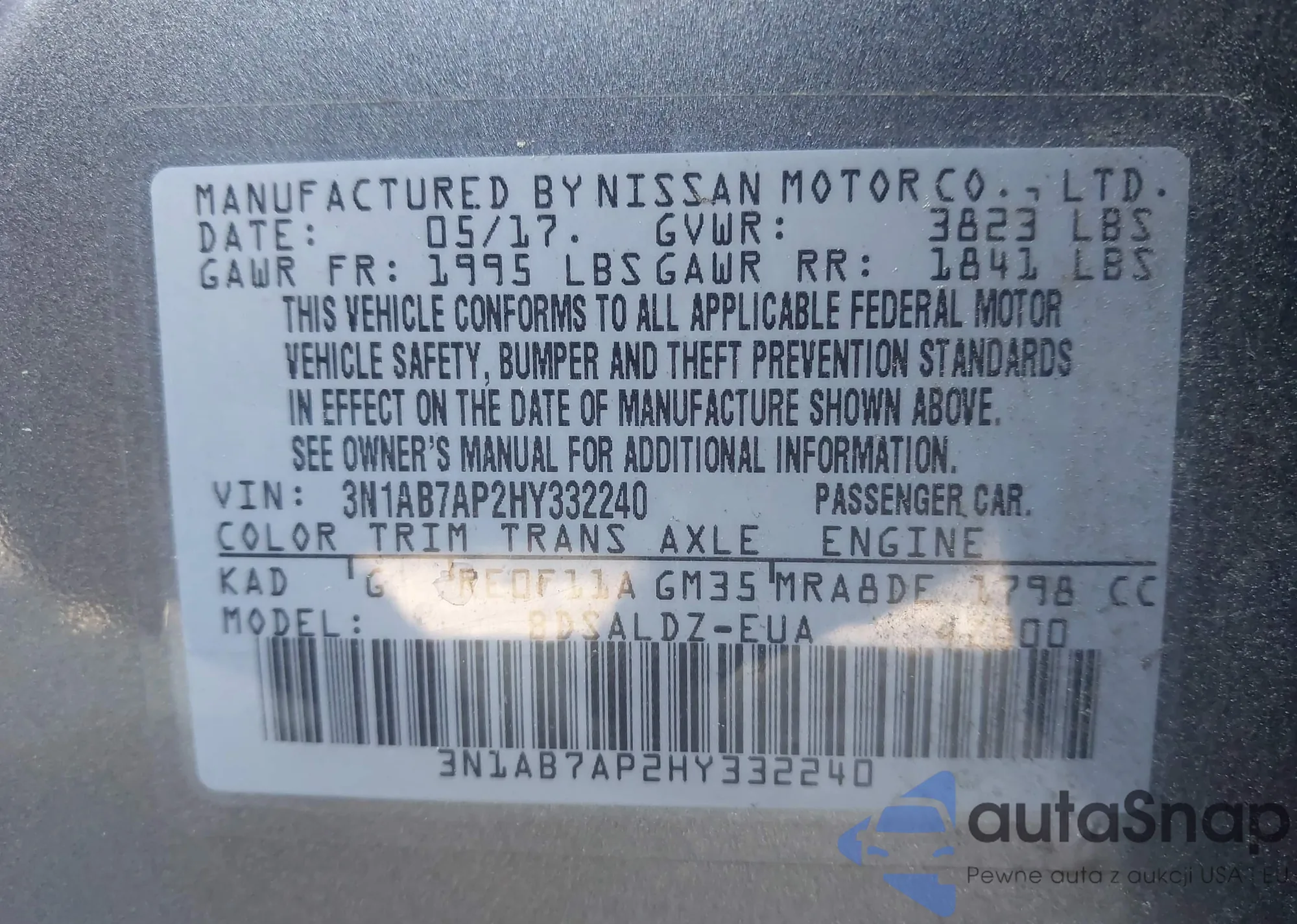 • VIN 3N1AB7AP2HY332240