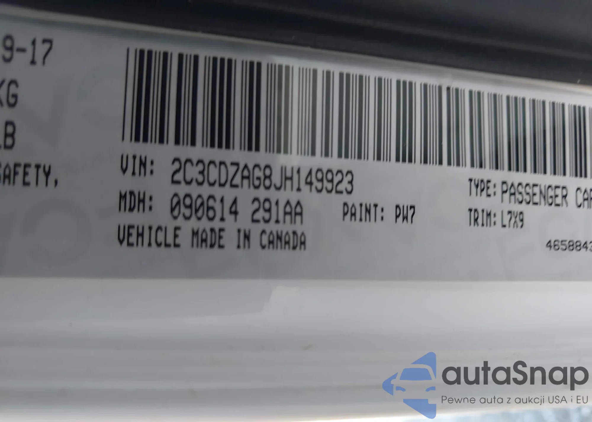 • VIN 2C3CDZAG8JH149923