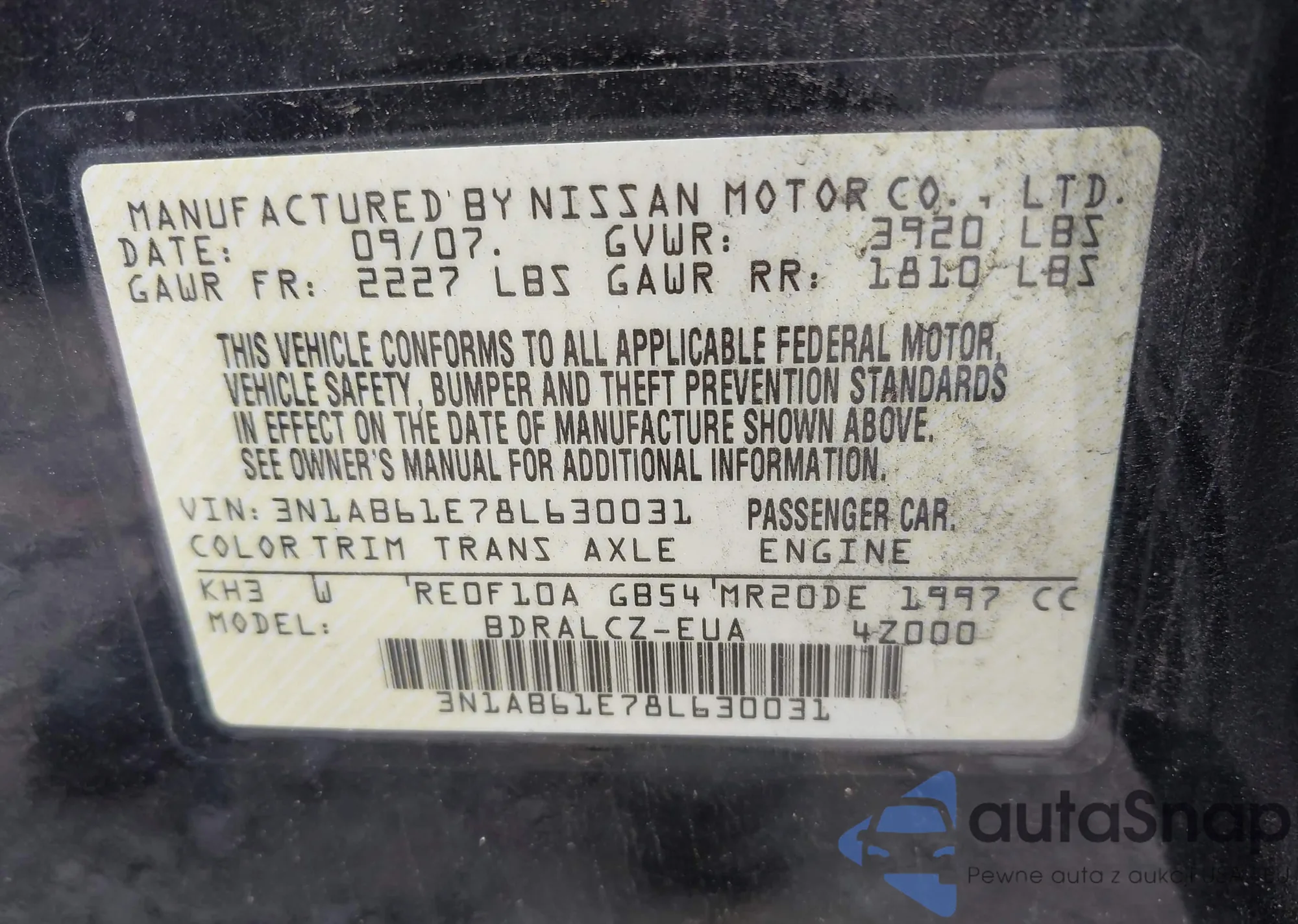 • VIN 3N1AB61E78L630031