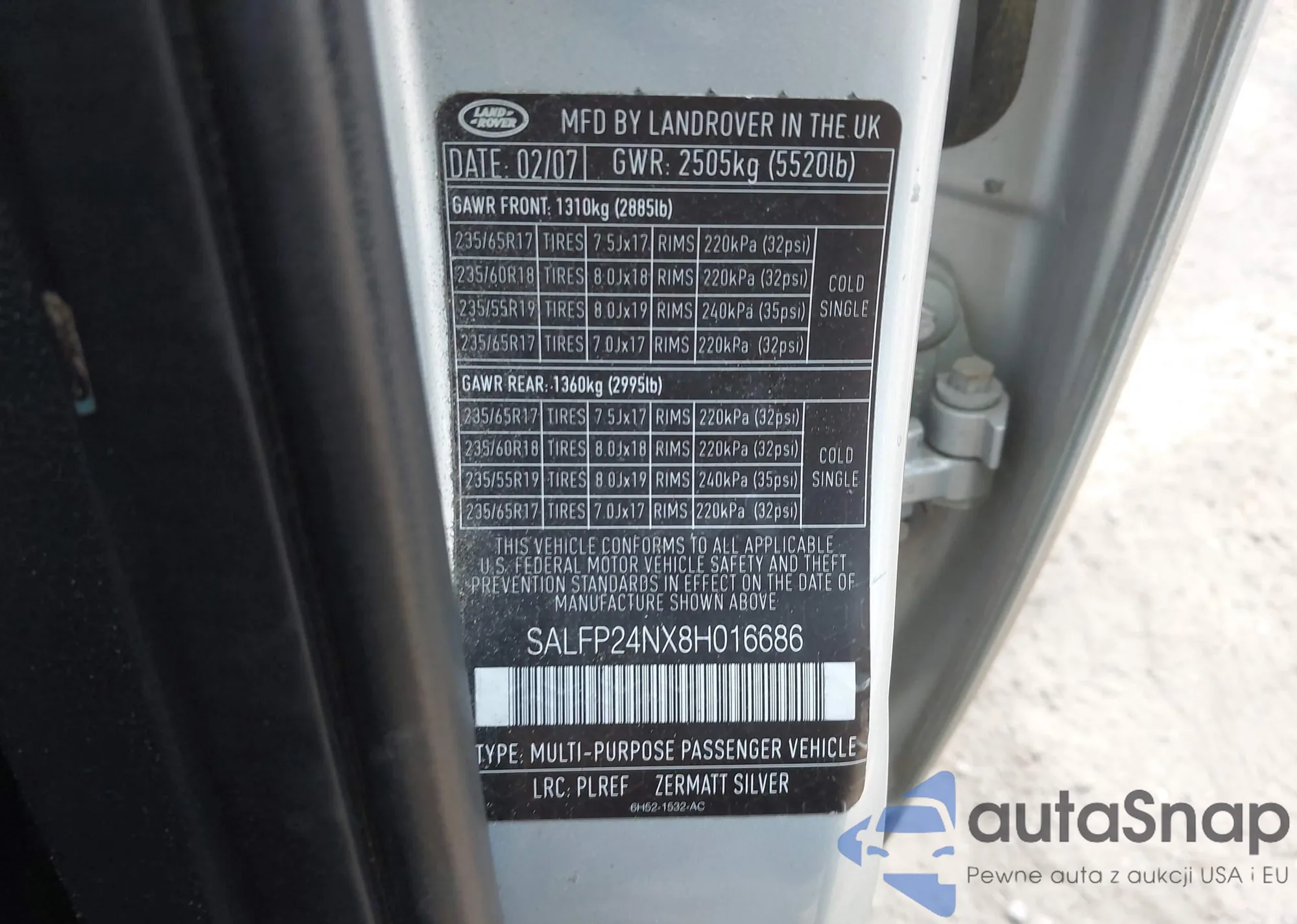 • VIN SALFP24NX8H016686